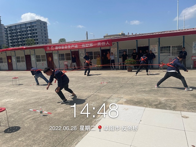 为了丰富职工业余文化生活,活跃项目部气氛,增强员工的凝聚力和向心力,激发员工拼搏进取的企业精神,2022年6月28日下午颍州EPC项目和诚创公司组织开展“不忘初心聚合力,牢记使命争排头”为主题的多向拔河比赛。比赛场面热闹非凡,笑声不断。呐喊声、加油声、助威声,此起彼伏。