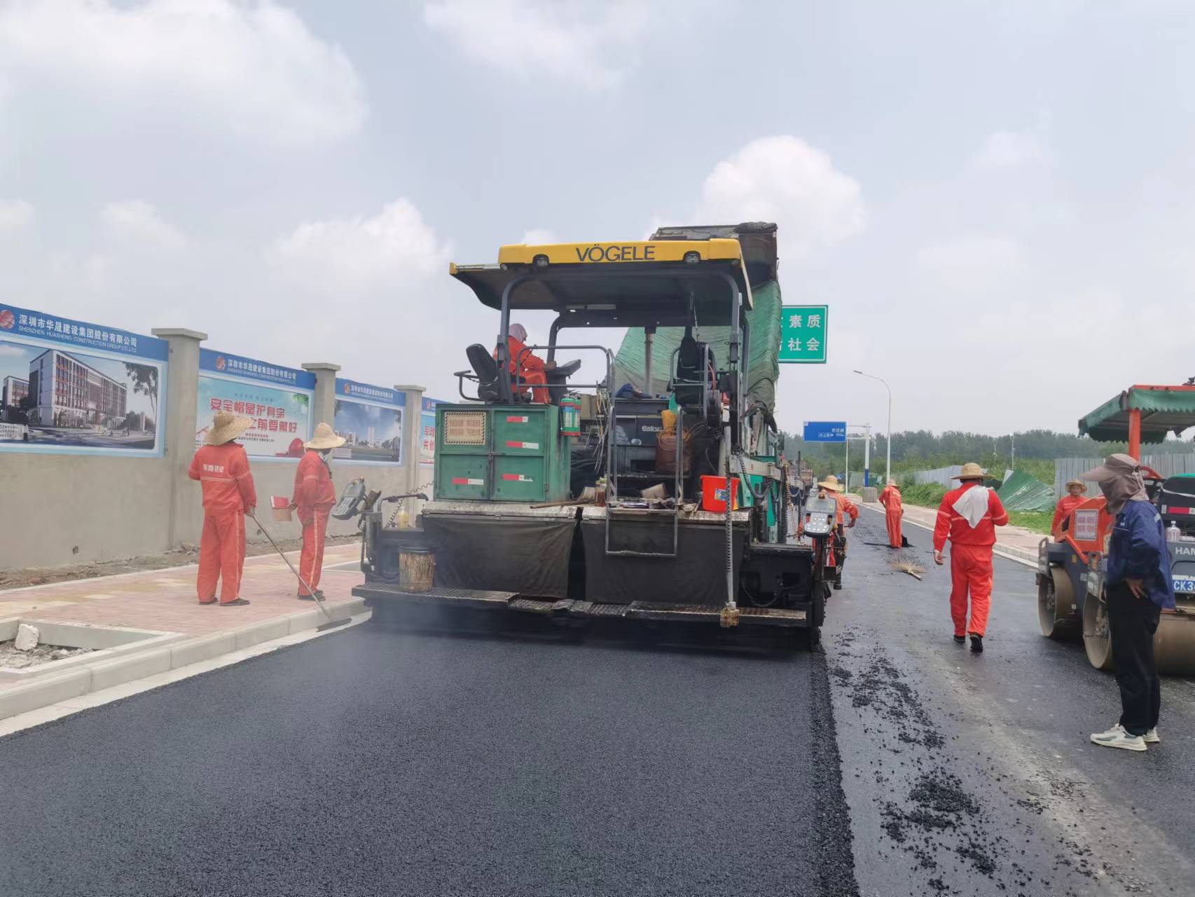 当天上午,在颍林路工地现场,摊铺机、压路机、装载车等机器轰鸣,工人们带着热腾腾的劳动气息,头顶烈日奋战在一线,黑色的沥青混合料渐次铺展在平坦的道路上。随着最后一车沥青混合料铺设完毕,颍林路顺利完成全部沥青铺设工作,为该路段顺利通车奠定基础。