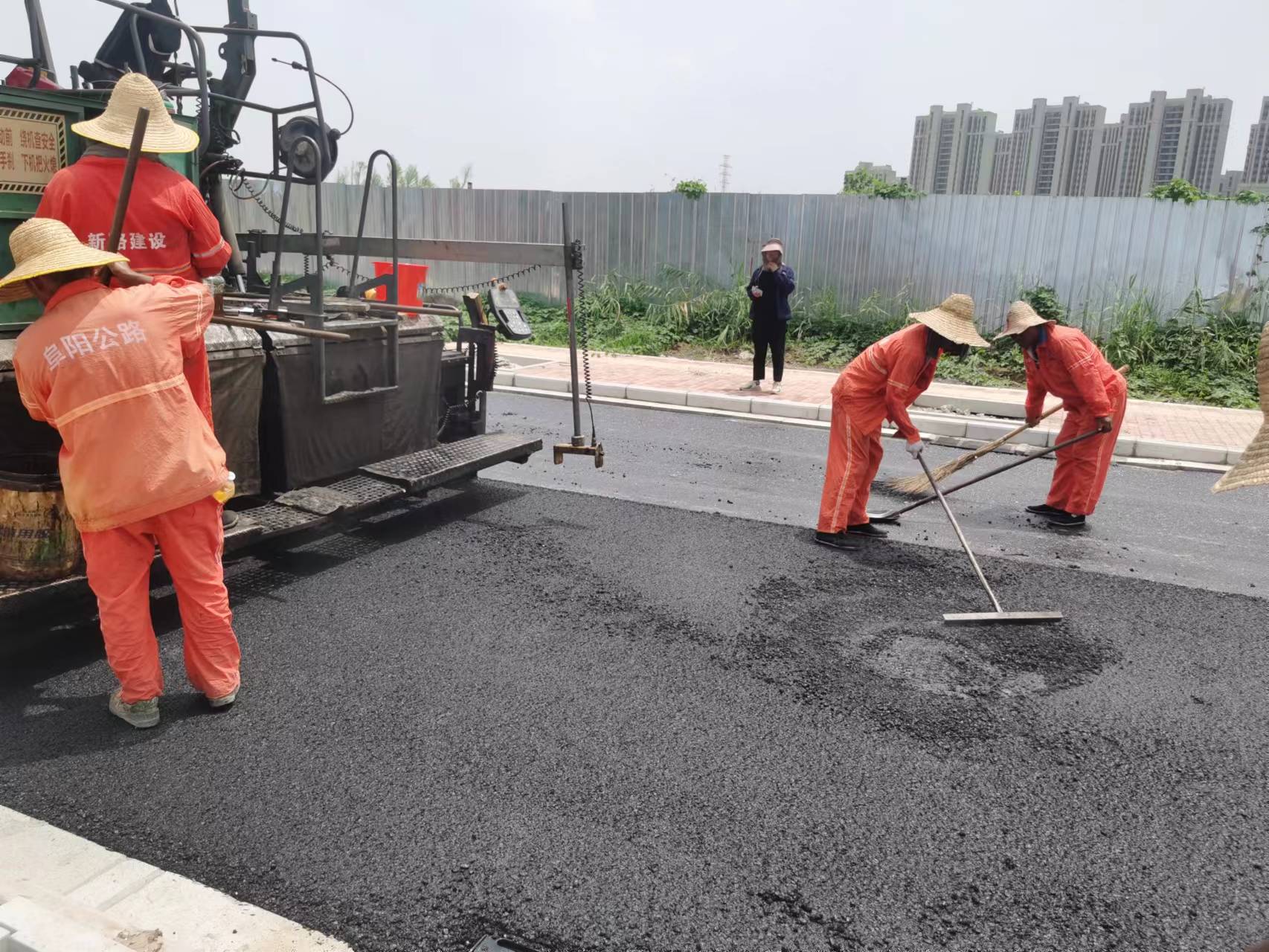 据了解,颍林路道路呈东西走向,分别与河口路和太和路相交,道路全长548.363米,红线宽度15m,等级为城市支路,设计车速30km/h,路面类型为沥青混凝土路面,路面结构为18cm3.5%低剂量水稳+36cm4.5%水稳+6cm厚AC-20沥青混凝土+4cmAC-13改性沥青混凝土,道路开通后将极大改善附近居民出行条件。连日来,阜城天气转变较快,中伏后的一场暴雨,虽令气温有所下降,却仍开启着“高温酷暑,上蒸下煮”的模式。7月30日,天气稍一转晴,颍泉区太和路项目的建设者抢抓工期保证项目建设进度,在全体参建人员的共同努力下,完成颍林路沥青铺设任务。