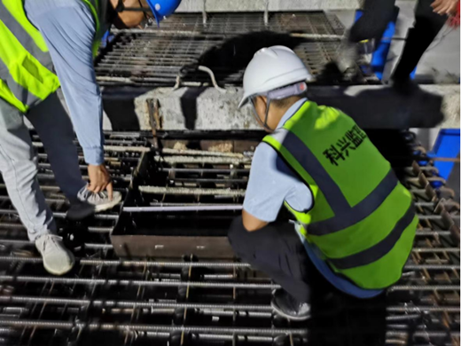 为加强外观质量控制,确保首片30m箱梁的顺利浇筑,模板全部采用新定型钢膜,表面贴合不锈钢模板组合,项目部精心组织、周密部署、组织专题交底会,对钢筋绑扎、波纹管定位、模板拼装、混凝土布料及振捣等关键工序做出详细部署,加强工序控制。同时配备智能化设备,保证施工质量,包括智能数控张拉机、智能压浆设备,保证了张拉、压浆关键工序的时效性和真实性;安装自动喷淋养护系统,从供水到喷淋养护实现全过程智能化控制,高效养护,有效保障箱梁混凝土强度。