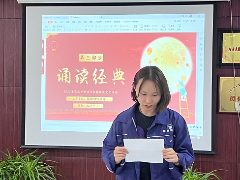 为继承和弘扬中华民族的优秀传统文化,了解中秋节风俗习惯以及其中所承载的中国所独有的文化内涵,更好地满足项目职工精神文化需求,增强节日文化内涵,烘托文化氛围,提升项目职工生活幸福感,颍州PPP项目于2022年9月7日开展了“我们的节日 中秋”主题活动,丰富项目职工的文化生活。