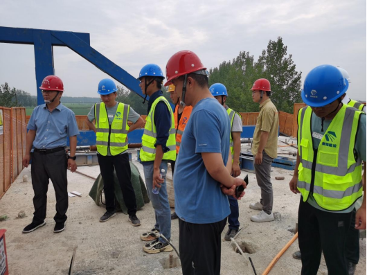 吴主任一行对施工现场进行了认真细致的排查,重点查看了施工工地安全生产,了解施工单位的安全生产责任落实情况及现场施工质量排查。对跨宁洛高速特大桥挂篮施工现场、钢筋加工场、预制梁场及水稳拌合站等进行检查,特别是施工现场防护设施、临时用电、特种设备等进行了全面排查,并充分肯定了我部施工现场的安全防护和文明施工形象。同时,认真细致的了解了本项目的施工进展情况,项目部节日期间的值班情况和节前的安全隐患排查工作开展情况。
