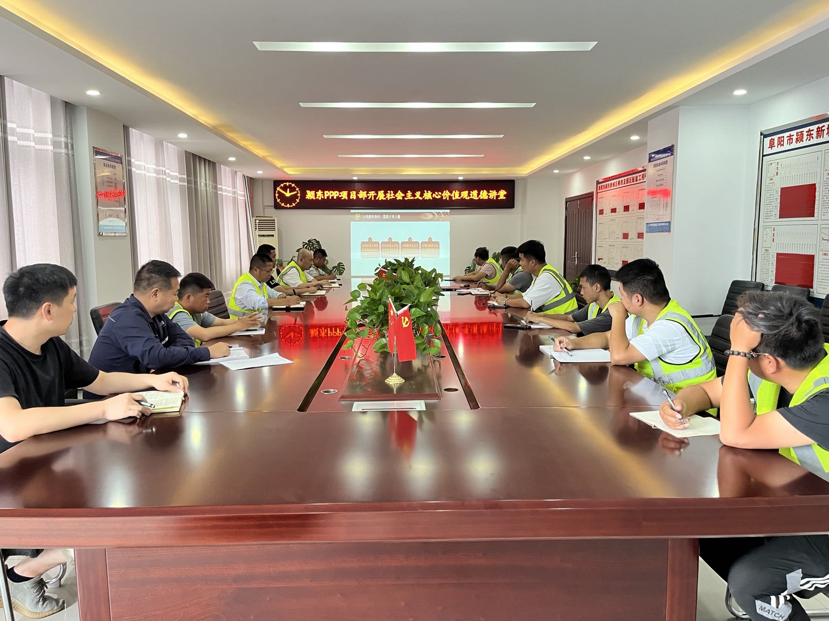 9月15日下午,颍东PPP项目部组织开展社会主义核心价值观道德讲堂活动。活动由项目经理王震主持,项目部及鼎盛公司成员共同参加。