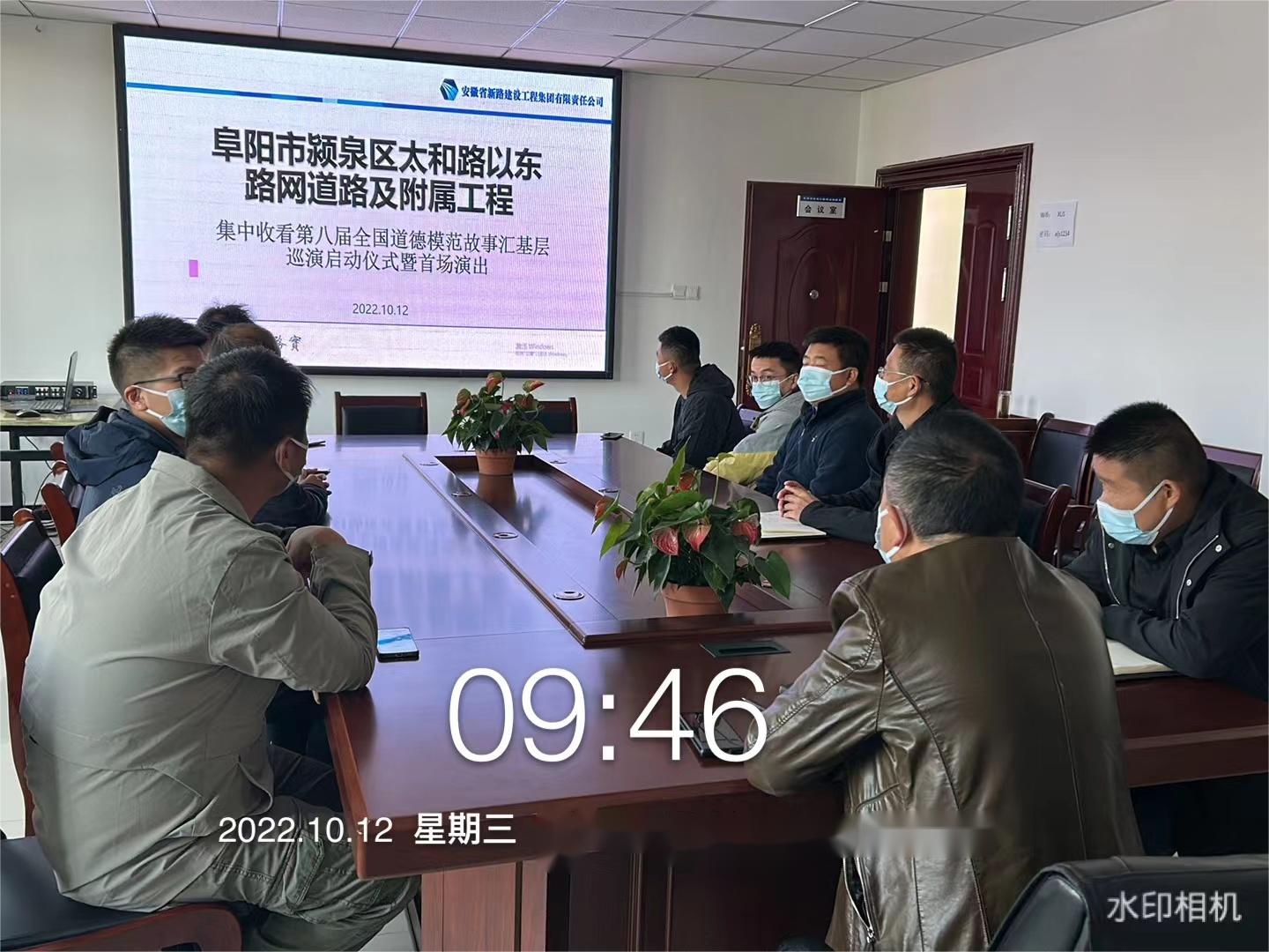 10月12日,颍泉区太和路项目部组织组织全体员工集中收看第八届全国道德模范故事汇基层巡演启动仪式暨首场演出录像,聆听道德模范的感人事迹,接受道德模范高贵品质的精神洗礼。