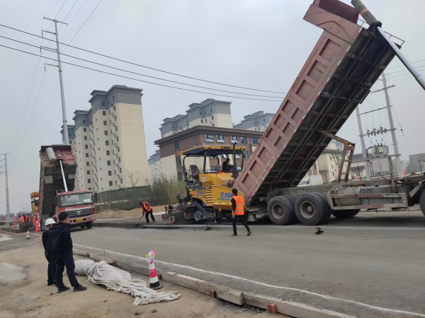 2022年11月26日,西湖安置区一期周边路网工程项目部,统筹规划,合理安排施工计划,全面调动各参建单位展开西湖安置区一期周边路网工程水稳摊铺施工。