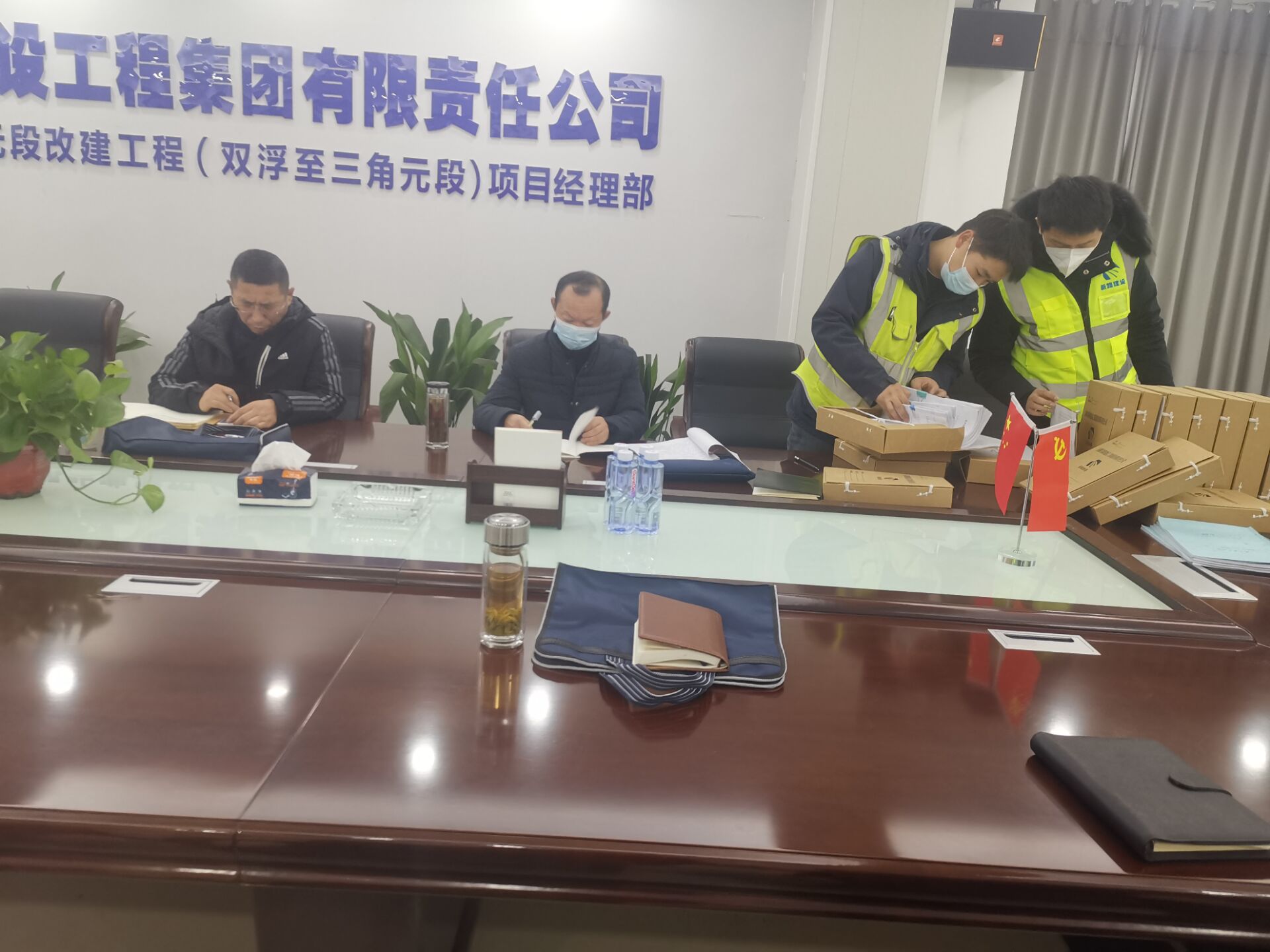施工现场,项目负责人董国庆汇报了我部当前工程施工进展情况,专家组一行重点巡查了双浮桥的安全用电、基坑防护;双浮街道的边通车边施工情况;特大桥箱梁预制施工工艺、外观质量等。现场检查结束后,专家组一行又对我部主要人员履约、质量管理行为、安全管理行为、环境保护和污染防治、农民工工资支付等方面的内业资料展开了详细的检查,并给予了我部工作高度的评价。