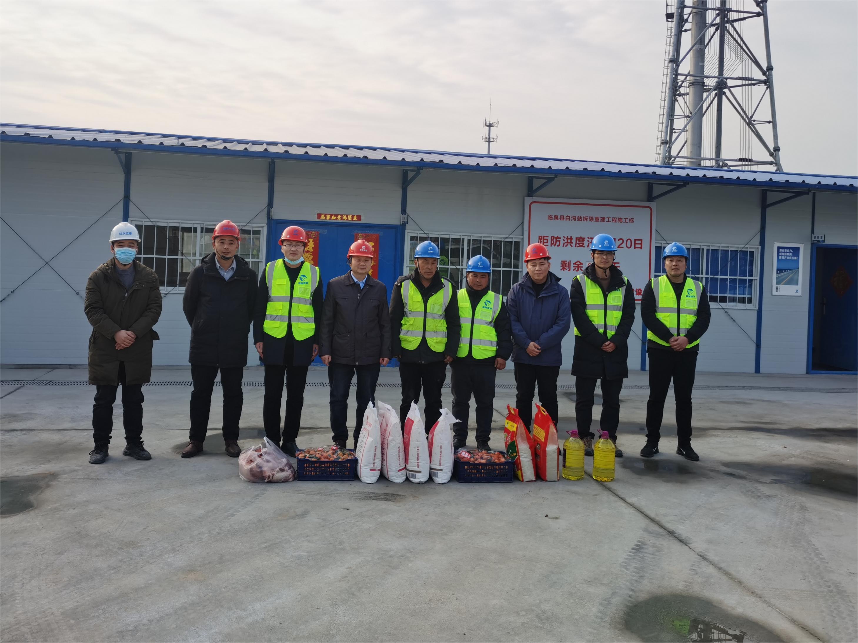 通过实地查看施工现场和生活环境,谢局提出:1、在确保工程质量和安全的前提下,按照节点工期,加快工程施工进度,在汛期来临之前完成白沟站的主体部分。2、春节是团圆的节日,大家克服困难坚守在一线,我们要做好后勤保障工作,保障生活物资供应,在一线过好春节。