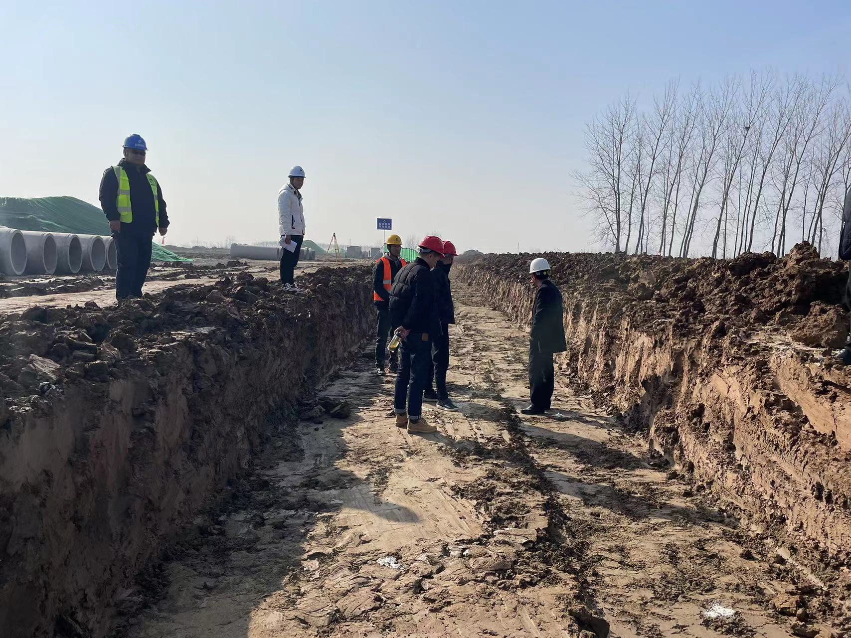 2023年2月20号上午,颍上县经七路项目组织进行沟槽质量验收工作,颍上县重点工程局、质监站、监理单位、勘察设计单位、施工单位五方责任主体各派代表参加质量验收工作。