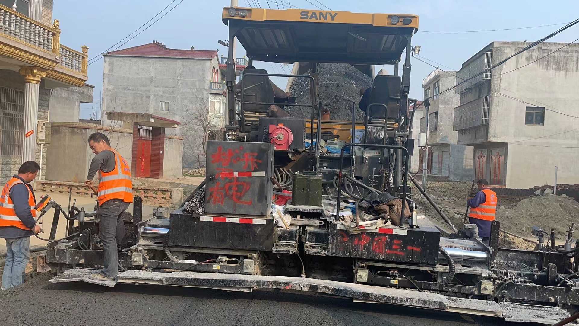 经历了迎仙镇部分路段杆线迁移及障碍物拆除困难的克服,在地方政府、建设、监理单位及乡镇的帮助下,水稳基层摊铺开始施工,现场机械轰鸣、人员有序作业,水稳摊铺机一次性整体摊铺成型,1台震动压路机、1台胶轮压路机紧随碾压,运料车来回穿梭,迎仙镇3.902公里迎仙南迎瓦路水稳施工顺利进行中。