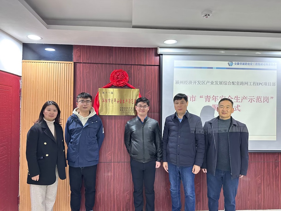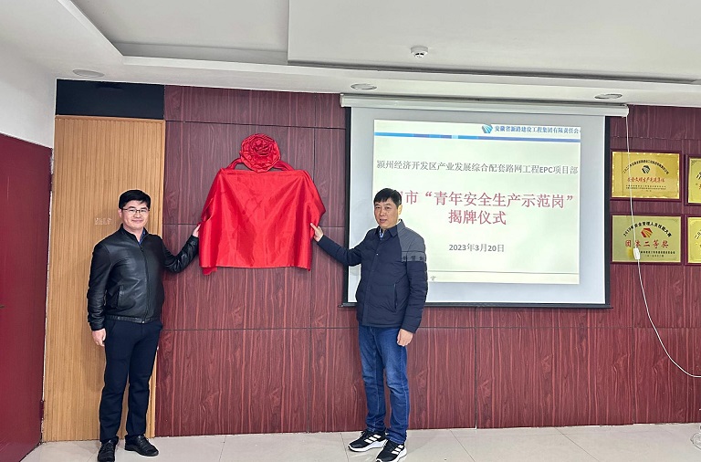 2023年3月20日下午,阜阳市“青年安全生产示范岗”揭牌仪式在颍州EPC项目举行,集团公司副总经理李超、人力资源部部长魏静、安全部部长苗玉磊出席活动。