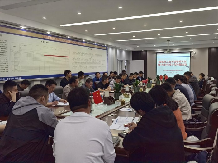 2023年4月28日,徐州至淮北至阜阳高速公路阜阳段项目路基施工技术现场研讨会暨4月份月度计划专题会议在我项目部召开。项目办分管领导、各部室负责人,各施工单位项目负责人、监理单位、中心试验室、路基施工队伍负责人参加会议。