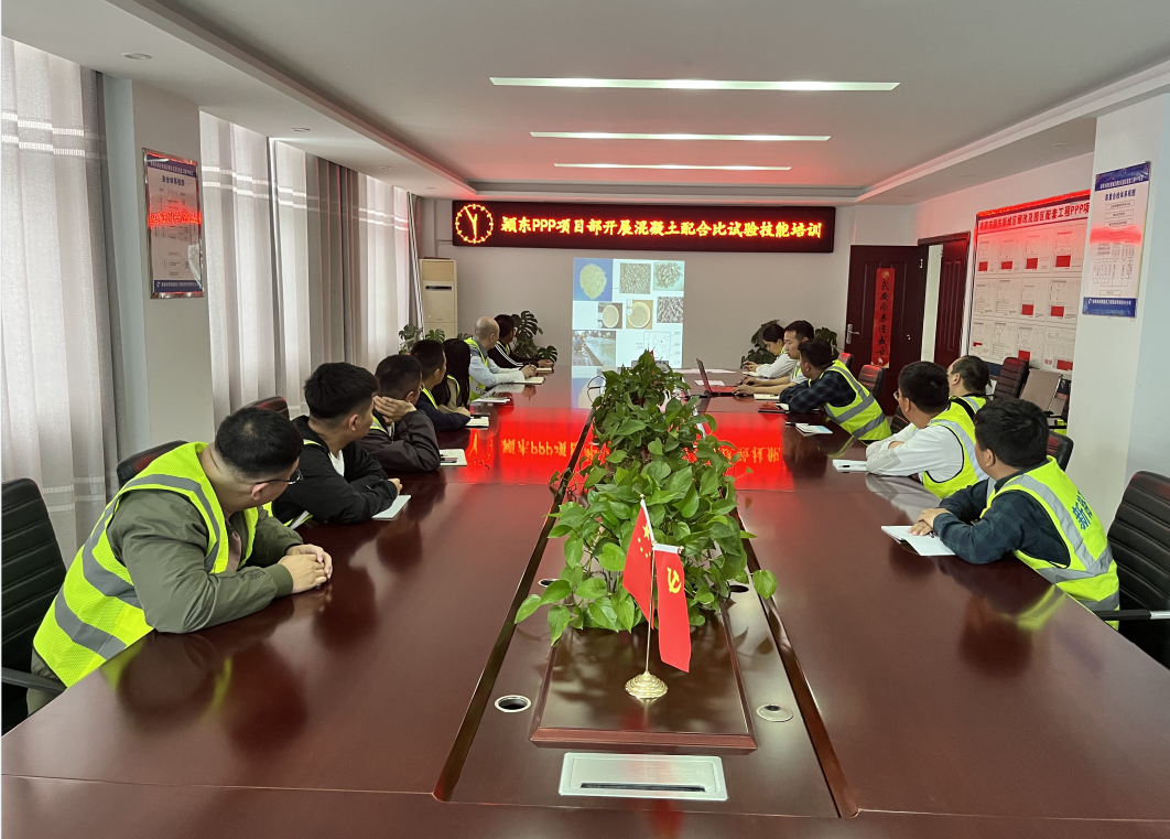 为了加深项目员工对混凝土相关技术指标、控制要点及规范规程的了解,提高对混凝土质量检验、检测工作的认识,不断提升现场人员的技术理论水平、和现场质量管理水平,4月29日,颍东PPP项目部组织开展了混凝土配合比相关知识点技能培训。