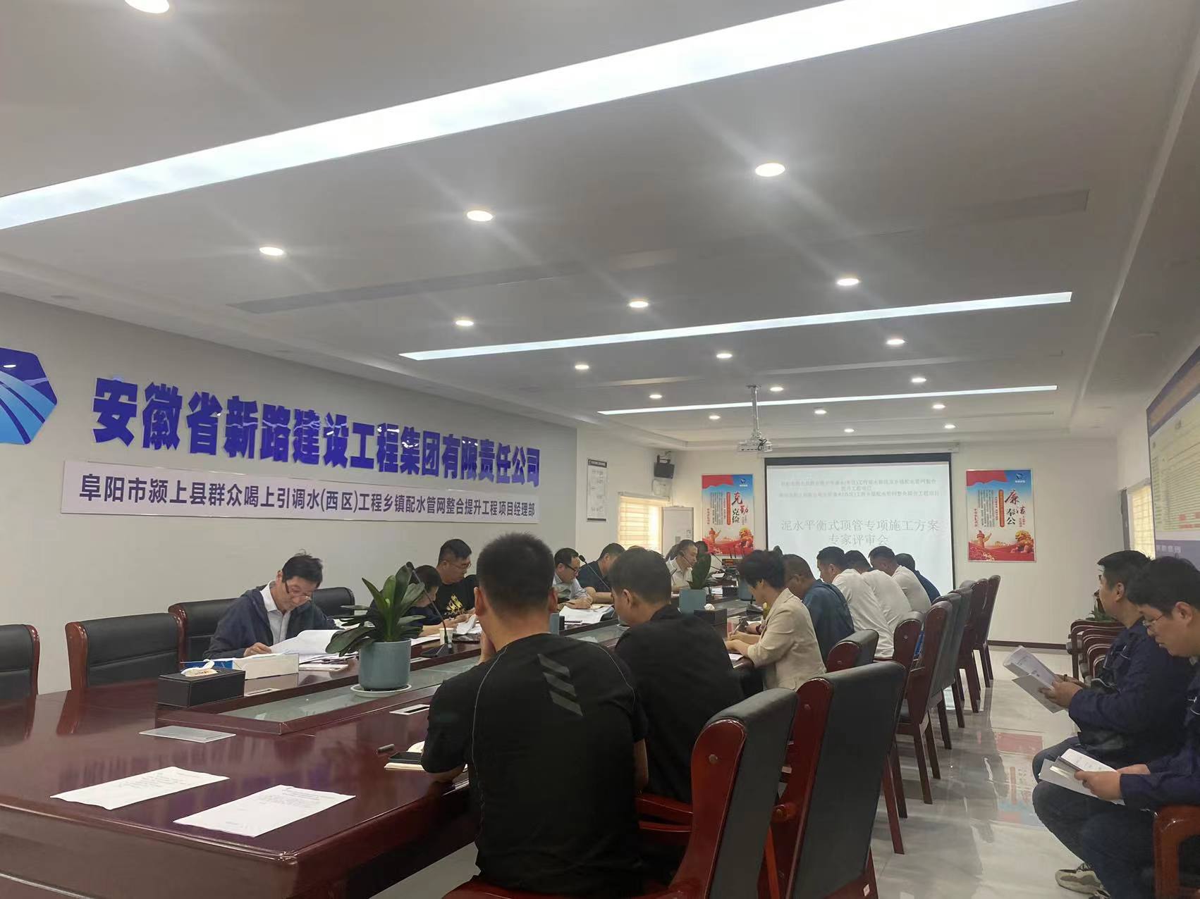 2023年5月13日上午10;00,阜阳市颍上县群众喝上引调水(西区)工程乡镇配水管网整合提升项目部在会议室召开顶管施工专家评审会。