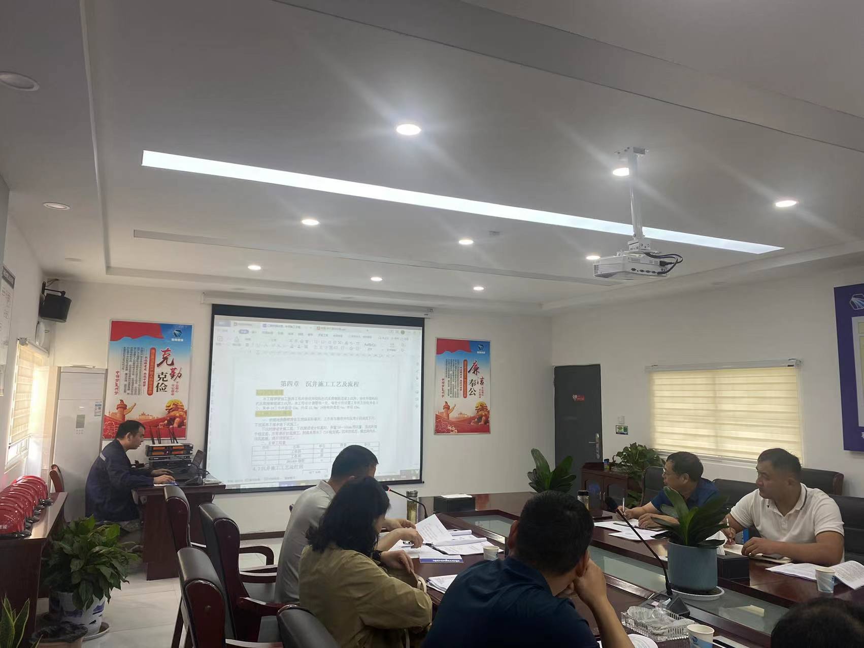 阜阳市颍上县群众喝上引调水(西区)工程乡镇配水管网整合提升项目,自颍上县城市地表水厂向县城十六个乡镇水厂敷设清水连通管。评审会上,项目负责人详细向评审组介绍了工程具体情况、总体计划、施工部署、工艺流程、施工安全保证措施、人员配备等详细信息。评审专家团在听完项目负责人介绍完项目情况后,对照施工图纸进行讨论,针对顶管施工工艺及流程提出相关建议。对参会人员说明提出建议的原因及下一步的整改方向,项目部参会人员认真记录相关问题并表示会后及时改进施工方案,确保施工工艺的规范化,保证施工过程中的安全性。