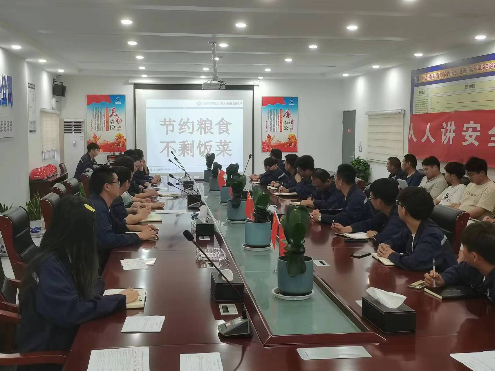 2023年6月8日,颍上县城南路网(南纬三路)项目部下午19:00,在会议室召开主题为“节约粮食,不剩饭菜”主题活动。