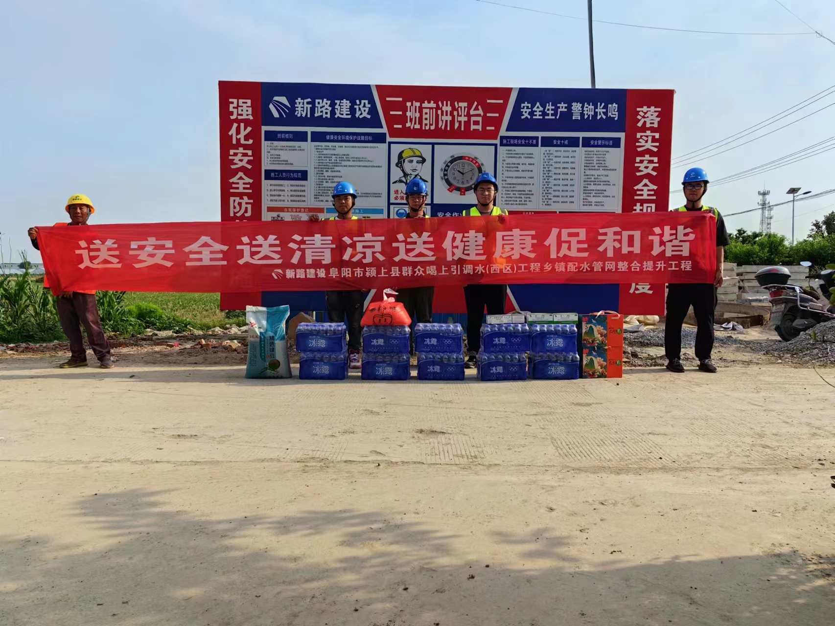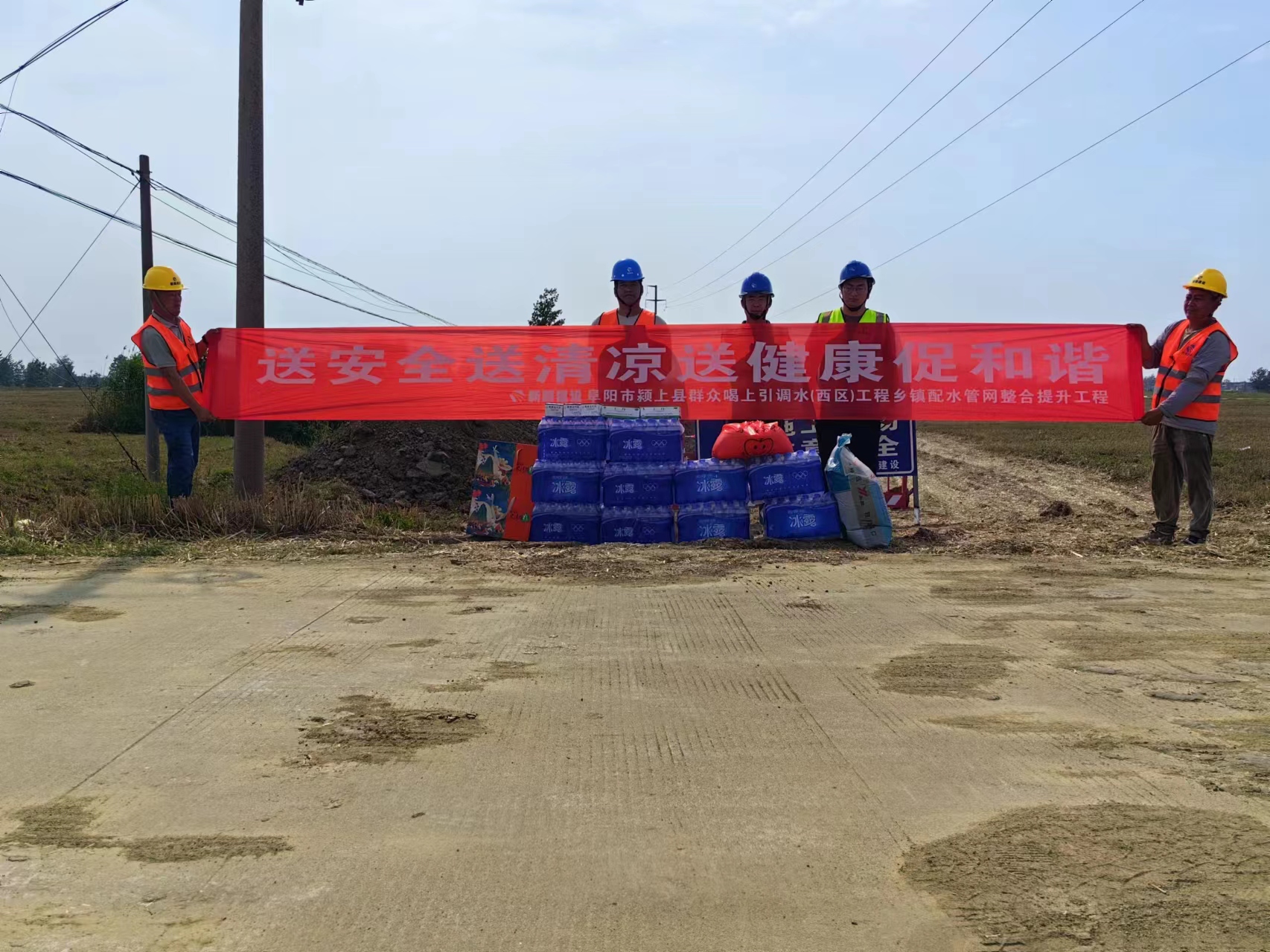2023年6月15日,颍上县城南路网(南纬三路)建设工程一期、阜阳市颍上县群众喝上引调水(西区)工程乡镇配水管网整合提升工程项目共同开展防暑降温慰问活动。