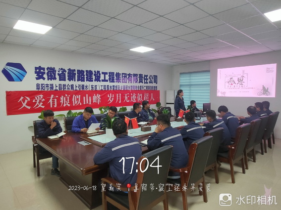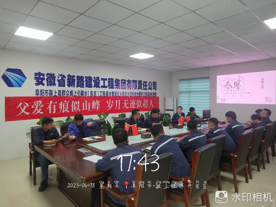 6月18日下午,颍上管网东区项目全体职工在此特殊的节日里欢聚一堂共同举办以“父爱有痕似山峰、岁月无迹似超人”为主题的感恩回馈父亲节活动。