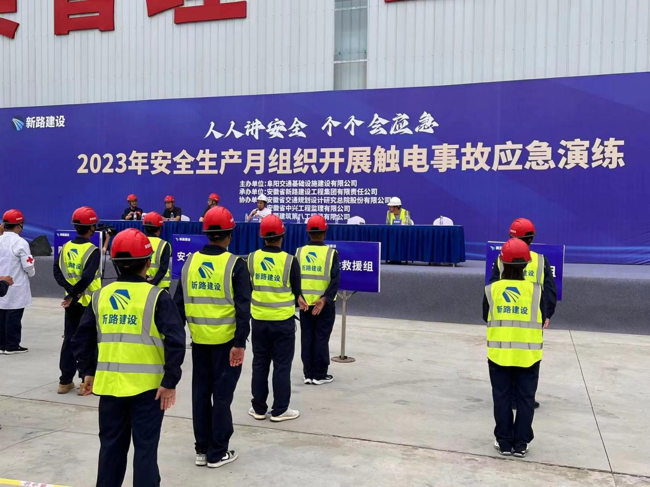 为深入开展“安全生产月”活动,强化安全生产救援,提高预防与处置安全生产事故能力。6月21日,徐州至淮北至阜阳高速公路阜阳段02项目在梁场组织开展触电事故应急演练,项目部全体人员参加,集团公司董事长唐谦作演练动员讲话。
