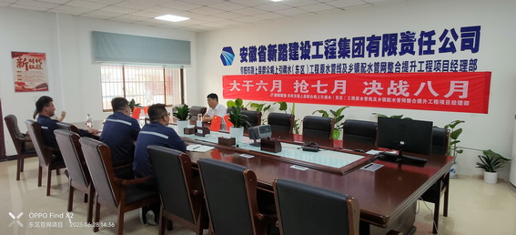 会上,李总首先详细询问了项目部现场生产工作、材料进场条件、管理人员配置方面及项目员工生活状况等进行一一了解,针对项目部情况,李总对项目部工作指出,一是颍上管网东区项目工期紧、任务重,业主要求工期紧迫,项目部要做好现场各道工序生产工作,合理安排施工计划;二是加强队伍建设,紧盯生产目标,加大人才培养力度,保证项目部管理人员配置高速运转,争取保质保量高效的完成施工任务;三是现场有材料且无法及时到场的情况,要及时与集团公司进行沟通,不能因材料原因导致现场无法按原有计划生产影响项目全线施工进度;四是关心项目员工工地生活状况,正直炎热夏季,面临工期紧张,现场昼夜加班加点施工,项目部要做好防暑降温药品、水等一系列保障工作,保证每位员工发放到位,考虑员工生活状况,抓生产工期的同时也要抓员工衣食住行。