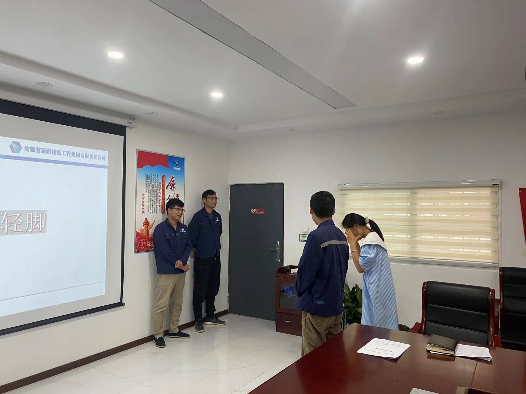 2023年7月1日,颍上项目部迎来2023年度全部项目实习人员。为展示企业文化,表达项目部对新进实习人员的欢迎,帮助刚步入工作环境的实习生们更快的适应,也为了丰富职工们的业余生活。同时为职工提供一个展现自我、释放才艺、增进友谊的舞台,让广大职工感受到家庭的温暖。颍上项目部在项目部会议室举办迎新活动。