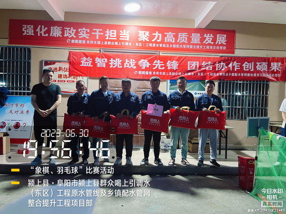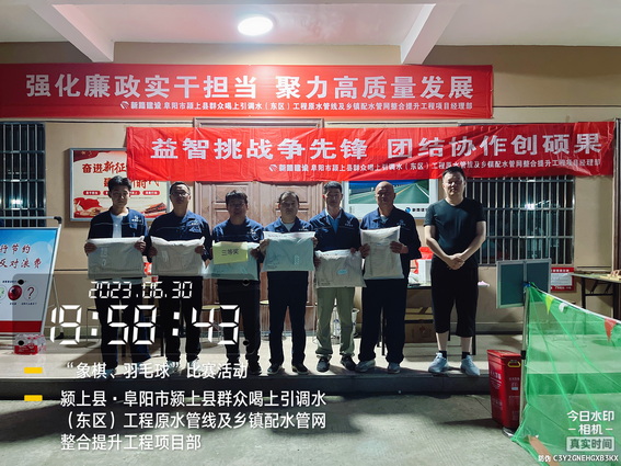 为进一步增强项目部一线员工的综合素质,丰富员工的业余文化生活,增强团队的凝聚力和向心力,培养一支身体素质好、工作热情高、团队作战强的活力队伍,6月30日下午,颍上管网东区项目部组织全体人员举办“中国象棋、双打羽毛球”比赛活动。