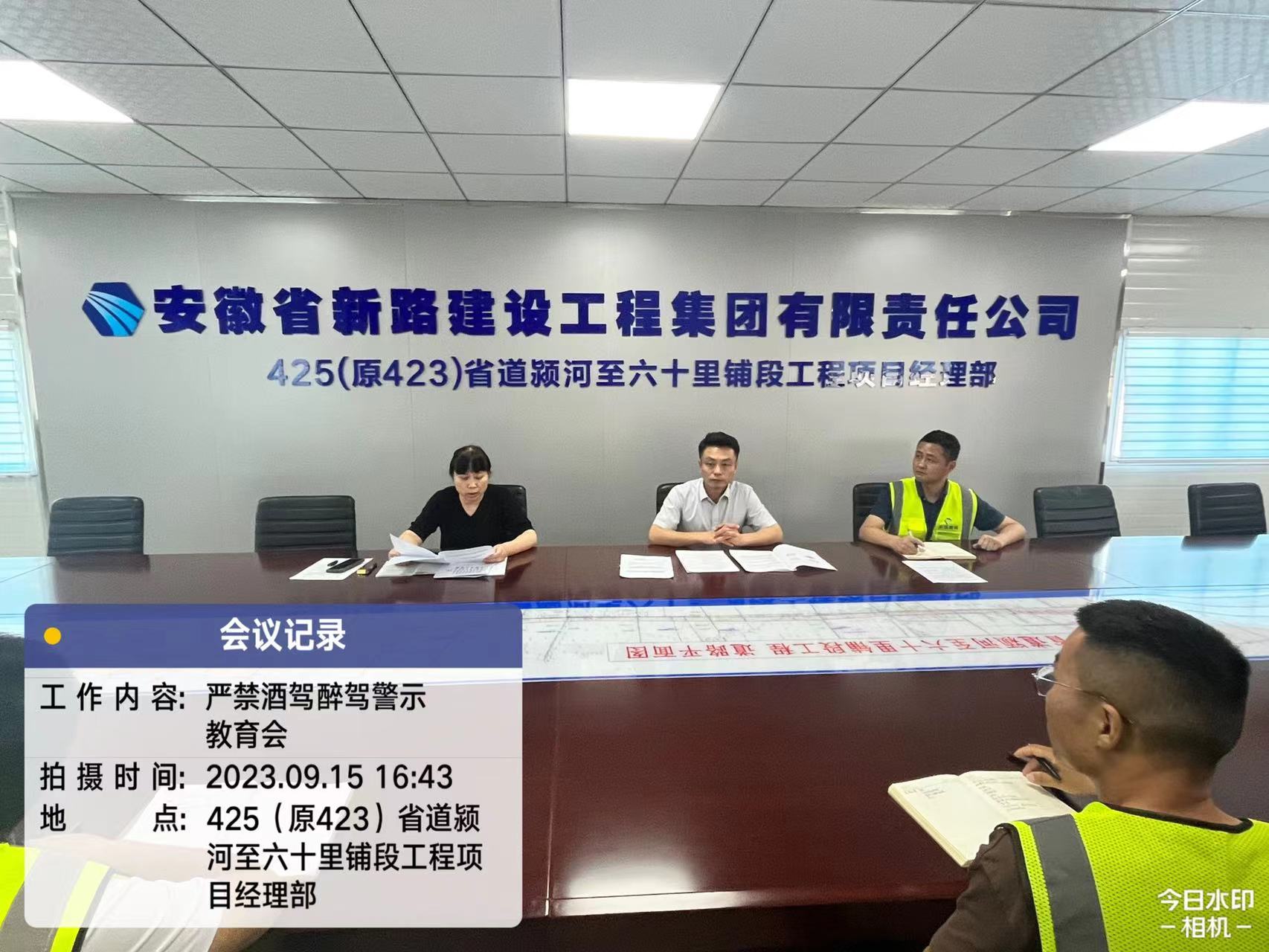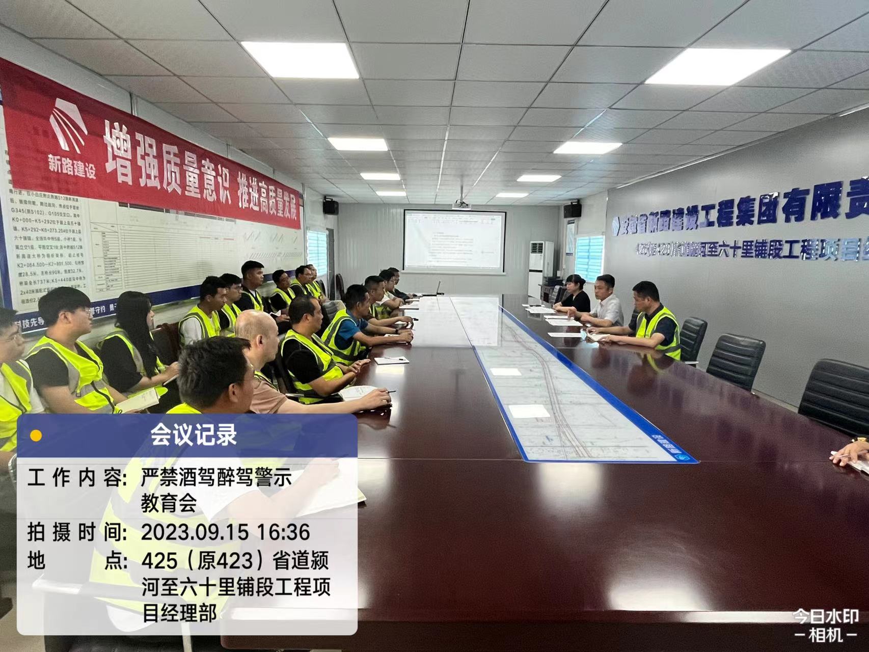 为进一步严明纪律、强化警示教育,坚决遏制酒驾醉驾违纪违法行为的发生,9月15日下午,425(原423)省道颍河至六十里铺段工程项目组织全体干部职工开展严禁酒驾醉驾警示教育活动。活动由项目经理王震主持,集团公司副总崔勇、审计部部长杨玉红同志莅临参会。
