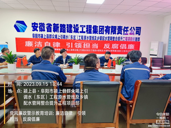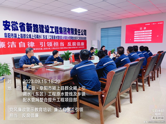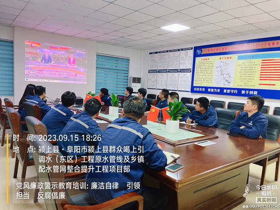 为落实集团公司党风廉政建设责任制的相关要求,进行双节前的廉政教育,引导大家在过节期间增强廉洁自律意识,筑牢思想防线,9月15日下午,颍上管网东区项目部综合科人员在会议室组织全体职工开展党风廉政专题教育培训。