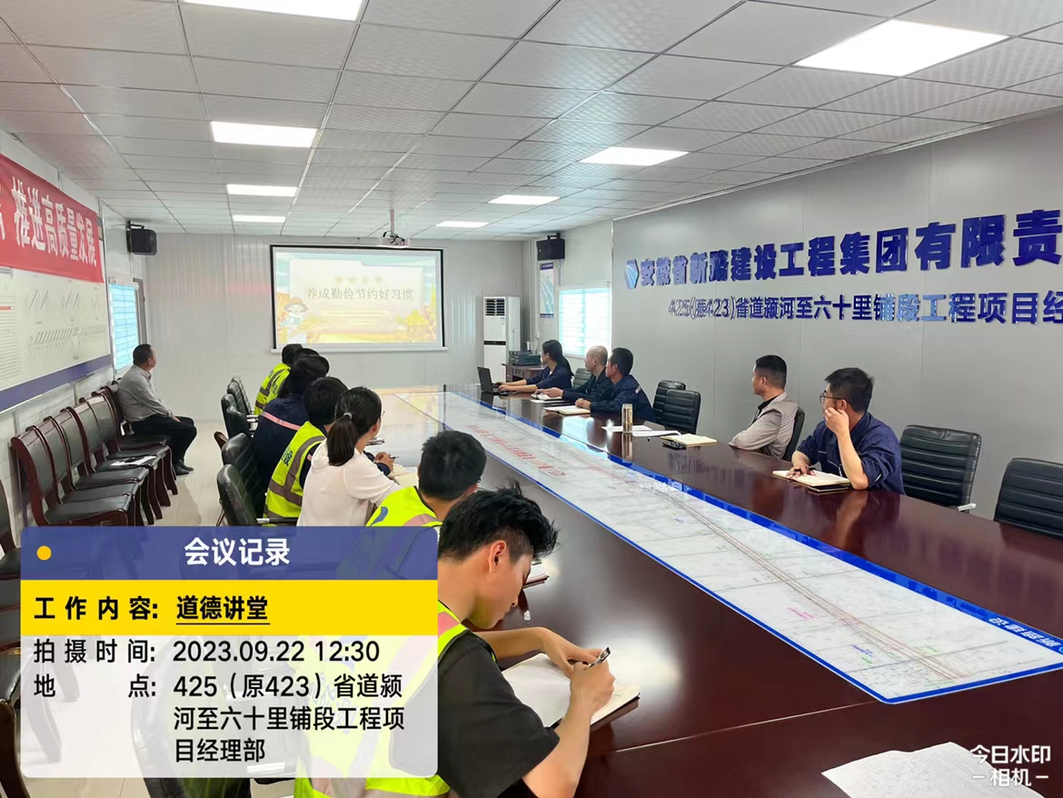 为深入贯彻落实习近平总书记关于制止餐饮浪费行为的重要指示精神,进一步弘扬中华民族勤俭节约的传统美德,增强党员干部厉行勤俭节约、反对铺张浪费的政治自觉,牢固树立节约光荣、浪费可耻意识,9月22日上午,425(原423)省道颍河至六十里铺段工程项目部组织全体员工开展了勤俭节约道德讲堂活动。