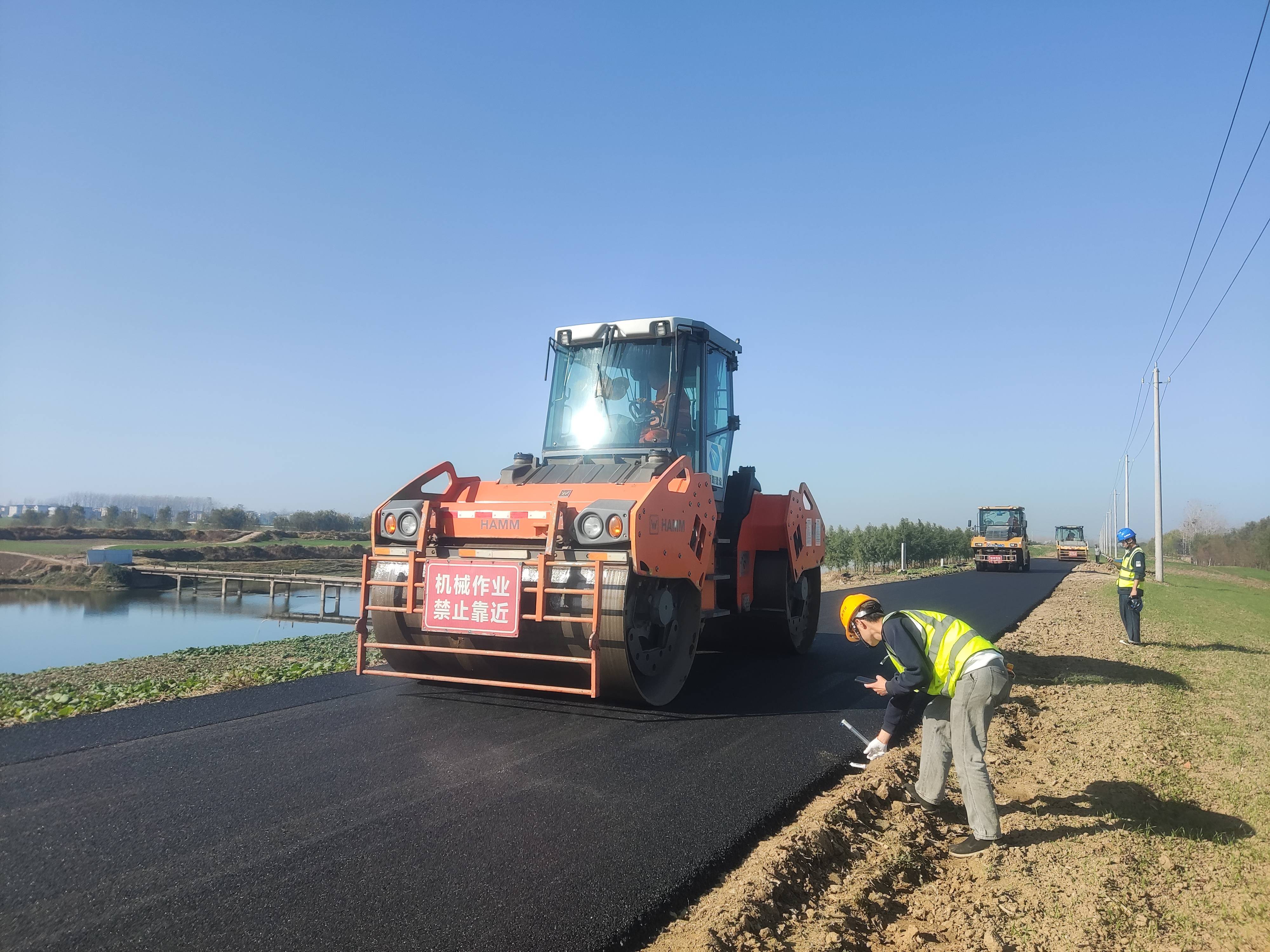 经过不懈的努力,阜南项目部顺利完成了谷河北岸堤顶道路及绿化提升工程的沥青摊铺工作,摊铺的沥青路面光滑平整,各项指标均达到了验收标准。此次沥青摊铺工作的顺利完成,不仅有效提高了道路的通行质量和舒适度,也为农村的现代化建设做出了积极的贡献。