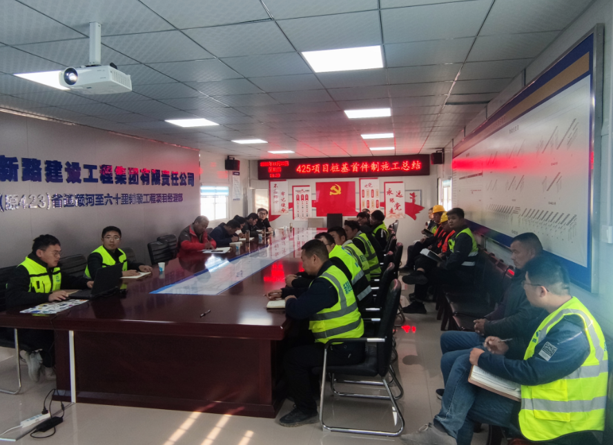 425(原423)省道颍河至六十里铺段工程项目已完成桩基首件施工,并编制完成桩基首件制施工总结。11月23日召开桩基首件制施工总结会,会议由项目经理王震主持,项目相关科室人员、监理单位及中心试验室共同参加。
