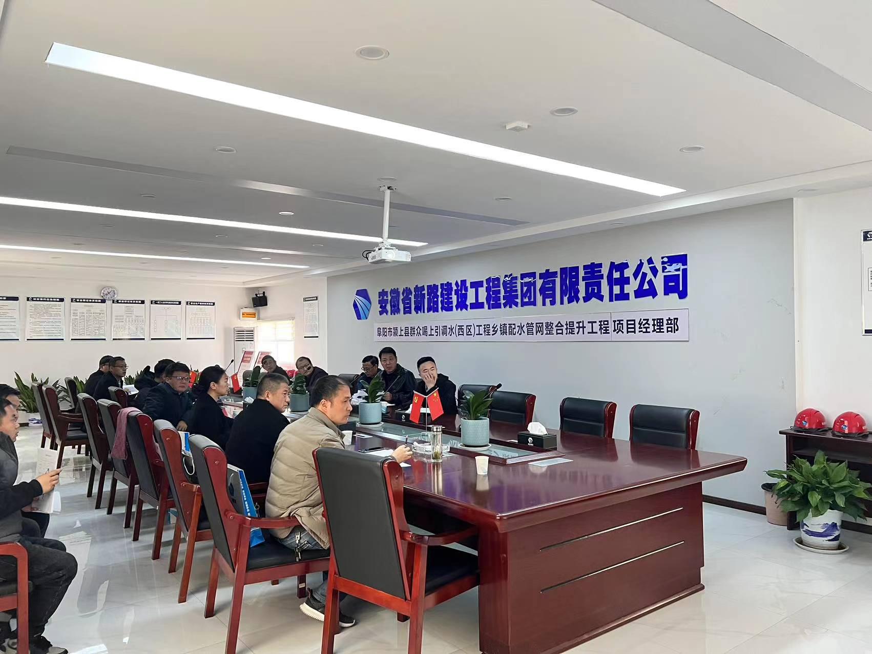 2023年11月25号,阜阳市颍上县群众喝上引调水工程乡镇配水管网整合提升(西区)工程在项目部会议室召开堤坝拉管施工方案专家评审会。