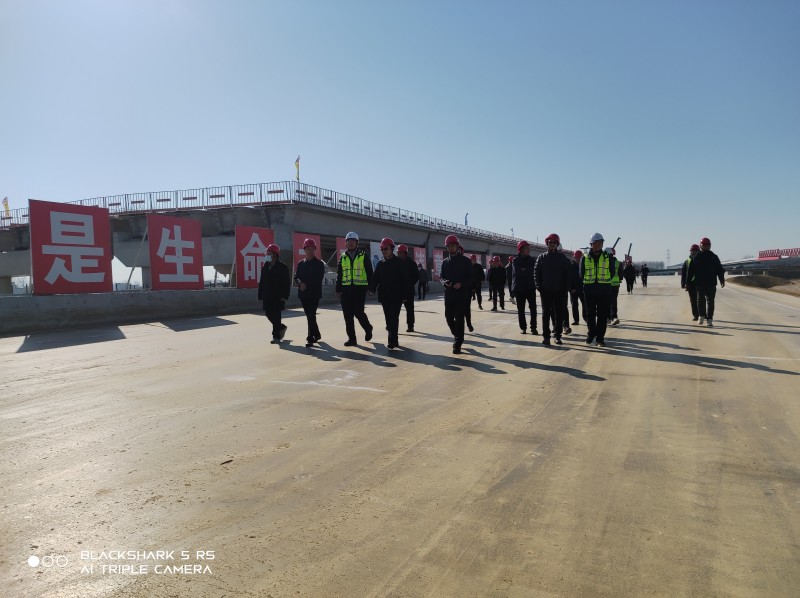 12月3日阜阳市公路学会理事长李福忠带观摩团成员共60余人到公司承建的徐淮阜高速公路02标项目观摩交流,集团公司副总经理郝智明、总经济师王壮飞、项目经理张仕龙陪同观摩。