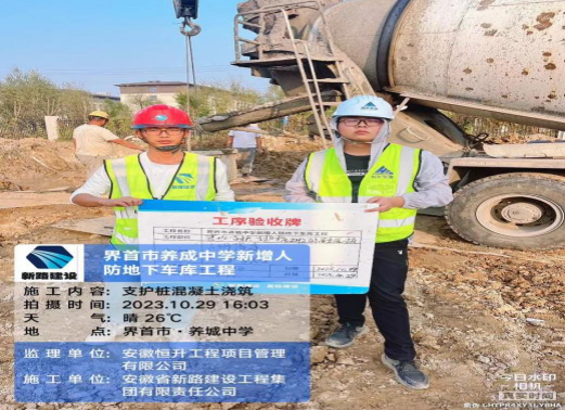 2023年10月29日由mansion88明升承建的界首市养城中学新增人防地下车库工程完成全部支护桩施工,顺利完成基坑支护主要工作,确保基坑开挖安全顺利进行。