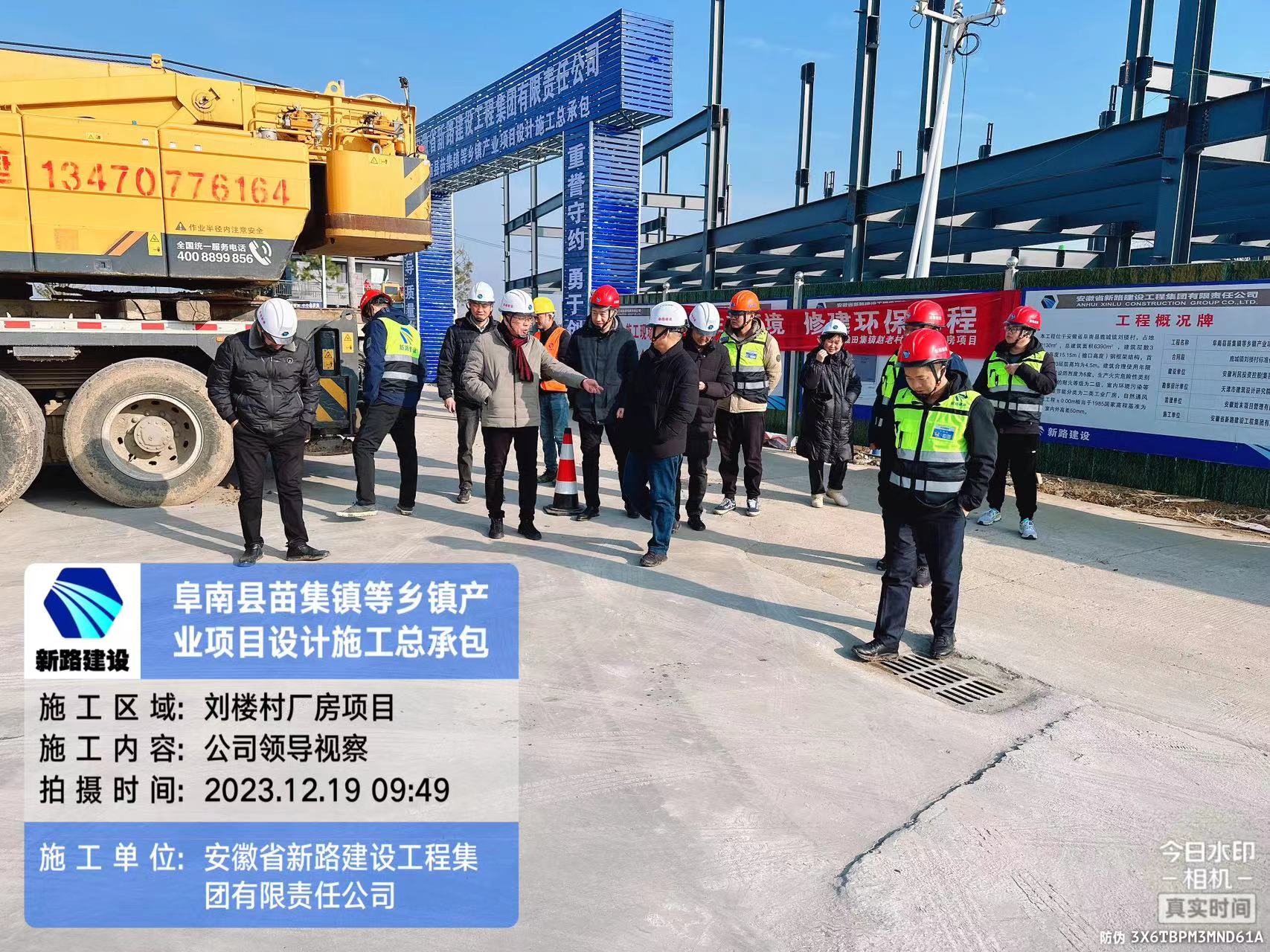2023年12月19号上午,集团公司项目管理二部主任孟超,安全部部长苗玉磊,集团公司外聘专家组成员岳峰、王介甫、傅殿新等一行人莅临阜南苗集镇等乡镇产业项目设计施工总承包项目施工现场进行质量、安全检查指导,阜南区域负责人薛鸿儒陪同检查,房建项目负责人芮兵杰介绍工程现场情况。