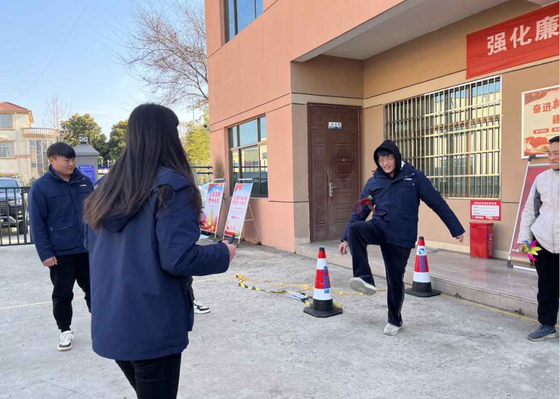 本次开展的体育运动主要包括跳绳、踢毽子、丢沙包,且以团体赛的形式进行角逐,共计分为四组。首先由综合科人员宣读比赛规则,采取积分制的形式,分数最多的获得一等奖,以此类推,未获得名次的团队可给予鼓励奖。现场每一组的成员都斗志满满,踊跃报名,只听到现场阵阵加油、鼓掌声,呼声不断。首先开始的是跳绳比赛,选手认真准备,队员积极配合也在一旁卖力鼓掌、数数,一轮比赛结束后,裁判将结果写在展板公示。随后开展的是踢毽子比赛,由于现场男生居多,这一轮比赛现场的氛围更加欢快,每一位选手的表现都引来大家前仰后合的大笑,这一刻的比赛现场成绩已经不那么重要了。最后进行的丢沙包比赛,需要两人配合,四组共同竞赛,并且直接将分数拉到赛点,攻守的人斗志昂扬,闪躲的人小心翼翼,旁边的队员眼疾手快地去抢沙包辅助自己的队伍,整场比赛下来大家都热血沸腾、激情澎湃,让这个冰雪天气瞬间变得暖和起来。