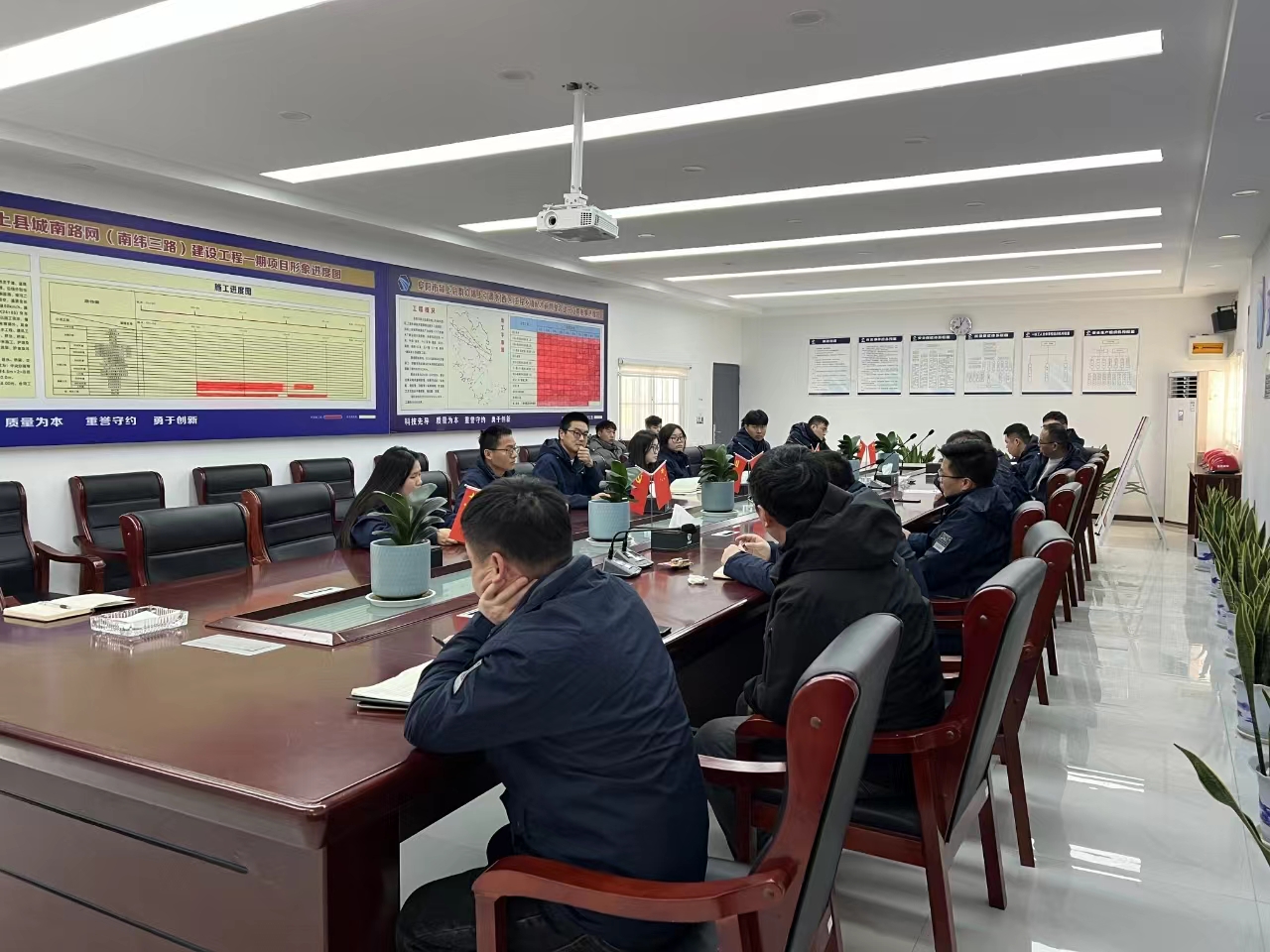 2024年2月5日,颍上城南路网项目部近日召开春节前全体人员会议,对项目进展、安全生产、节日值班等方面进行了全面部署。此次会议旨在确保项目顺利推进,同时保障全体员工的节日安全。