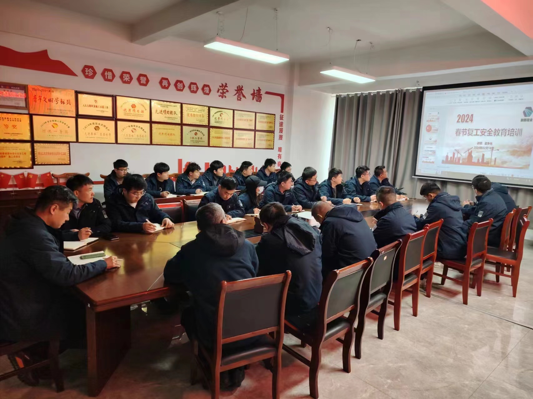 2024年2月18日,项目部开展了春节复工复产动员会暨安全教育培训,项目部全体人员学习了安全教育培训并观看安全警示教育片。本次培训针对节后安全风险隐患、安全注意事项、安全防范措施、应急处置措施等进行逐一讲解。通过本次培训进一步增强了全员抓好安全生产责任感,提高了项目部人员的安全管理意识。同时会议上结合现场施工情况部署了各项目的复工复产的施工计划,并要求项目安全科对各个班组在复工复产前开展全面性安全检查,主要对施工现场的各类设施、设备进行仔细的检查和维修,确保施工过程中的安全。