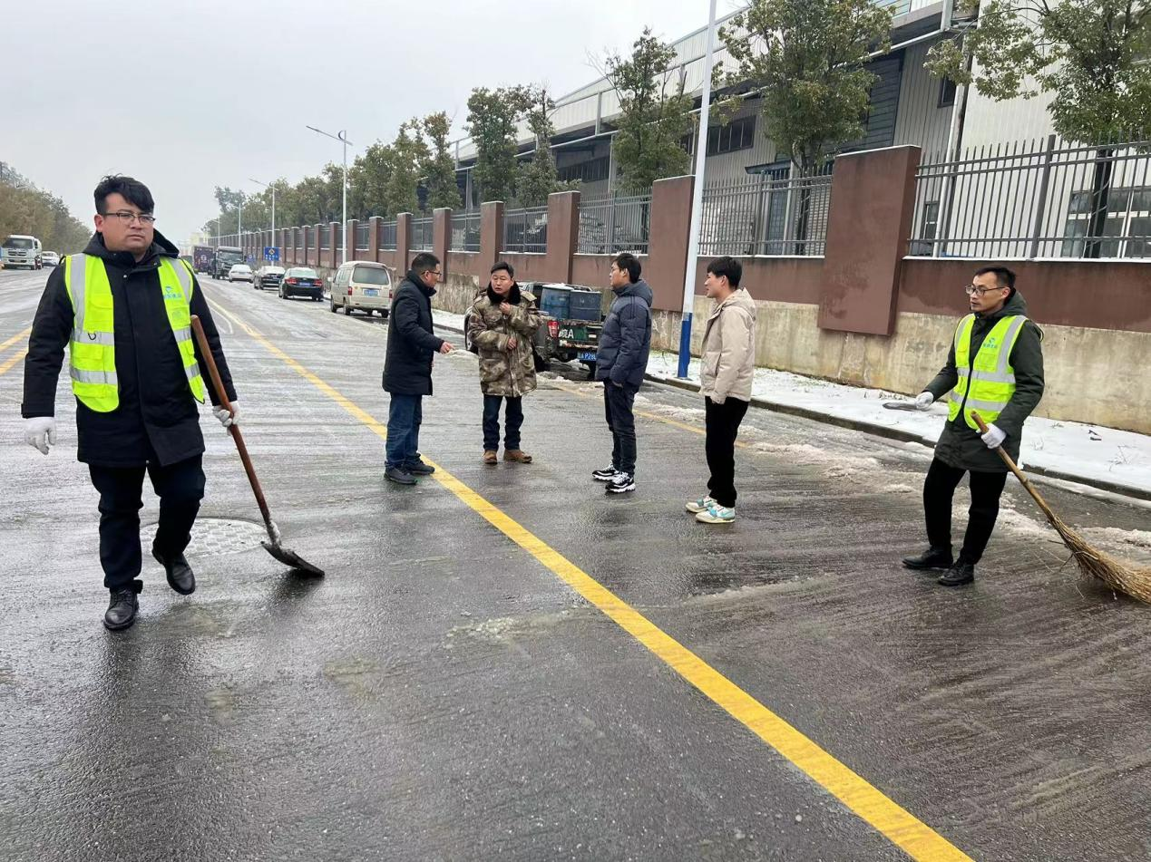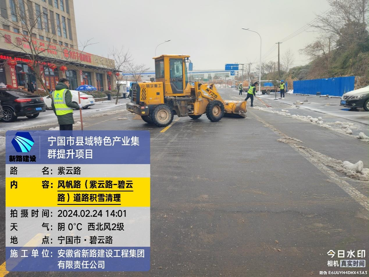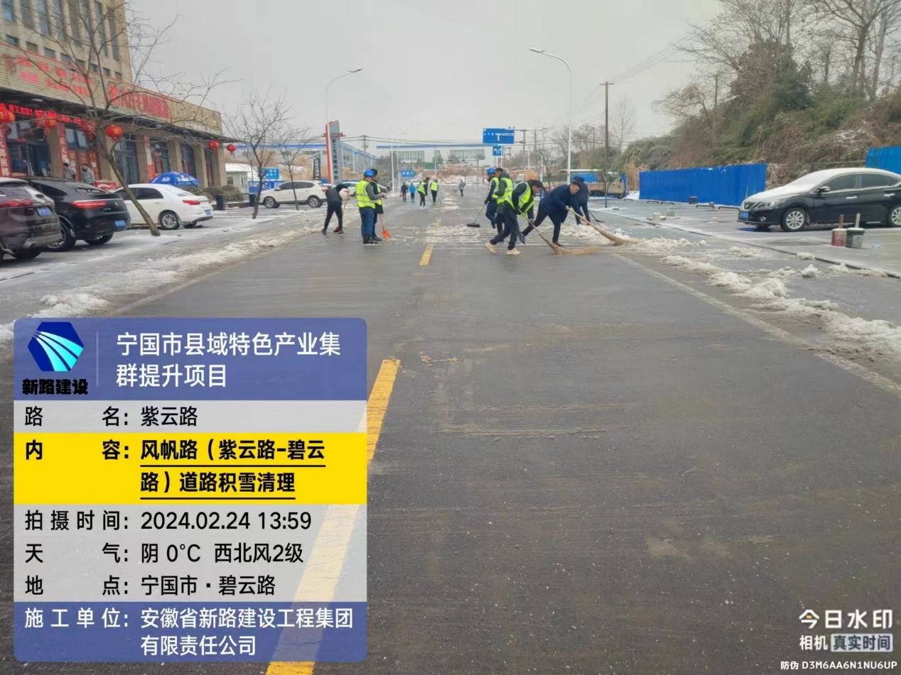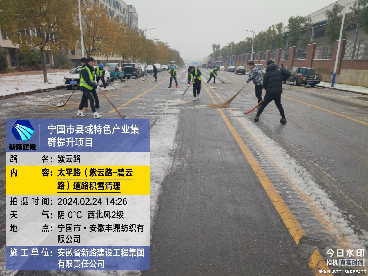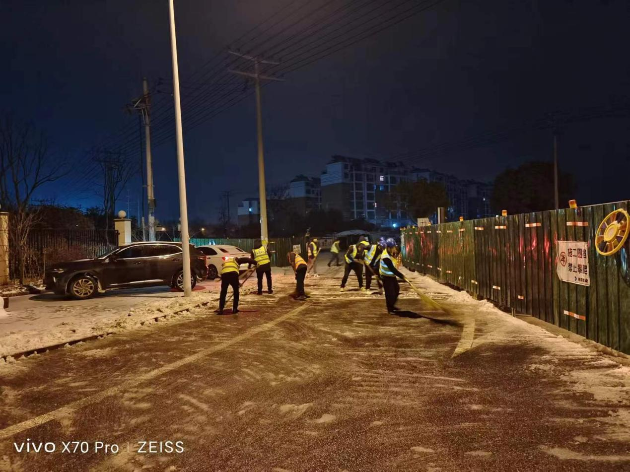 元宵前夜,宁国市受到大雪、冻雨影响,为保证道路畅通秉承国企担当,宁国紫云路改造项目连夜组织除雪突击小队,由项目经理担任除雪突击小队组长,其余为成员,针对宁国紫云路改造各个交叉口道路开展除雪保障工作,特别是对于车流、人流密集区域做到路面不留雪不留冰。除雪任务从元宵前夜一直持续到元宵节当天,除雪过程中项目部全体员工有铁锹用铁锹,有扫把用扫把,装载机驾驶人员驾驶装载机,各个都是拼命三郎不畏惧严寒全力以赴对待本次突击任务。