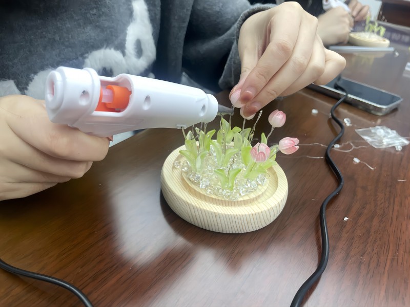 活动开始,综合科人员向参加人员介绍了手工DIY中所用的工具及材料,并结合教程视频详细讲解了制作花朵小夜灯的方法。大家兴致勃勃地拿着材料,发挥自己的想象力和创意,用一花、一叶、一妙手创作出兼具观赏性和实用性的手工夜灯。从小心翼翼到熟能生巧,大家一边体验一边兴高采烈地讨论着,同时不忘互相帮助、互相协作,现场气氛其乐融融。经过一个多小时的努力,一个个别致漂亮的花朵小夜灯在手中“诞生”了,欣赏着自己亲手制作的工艺品,大家脸上纷纷洋溢着满意的笑容。