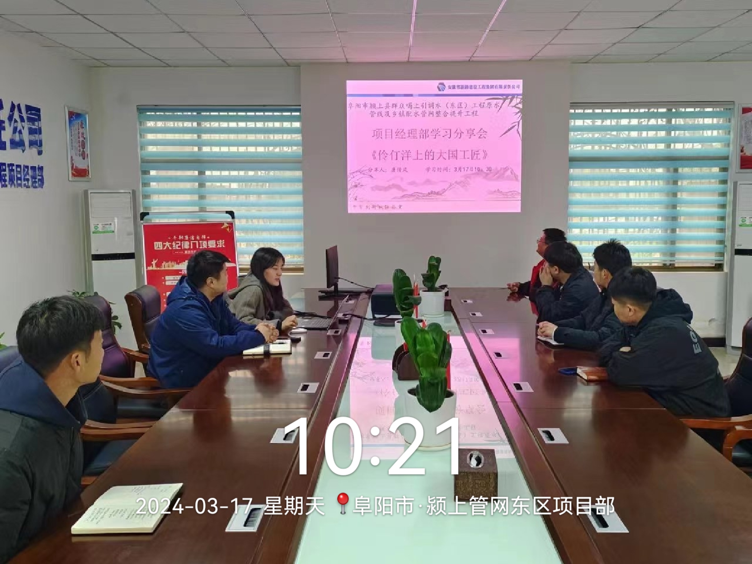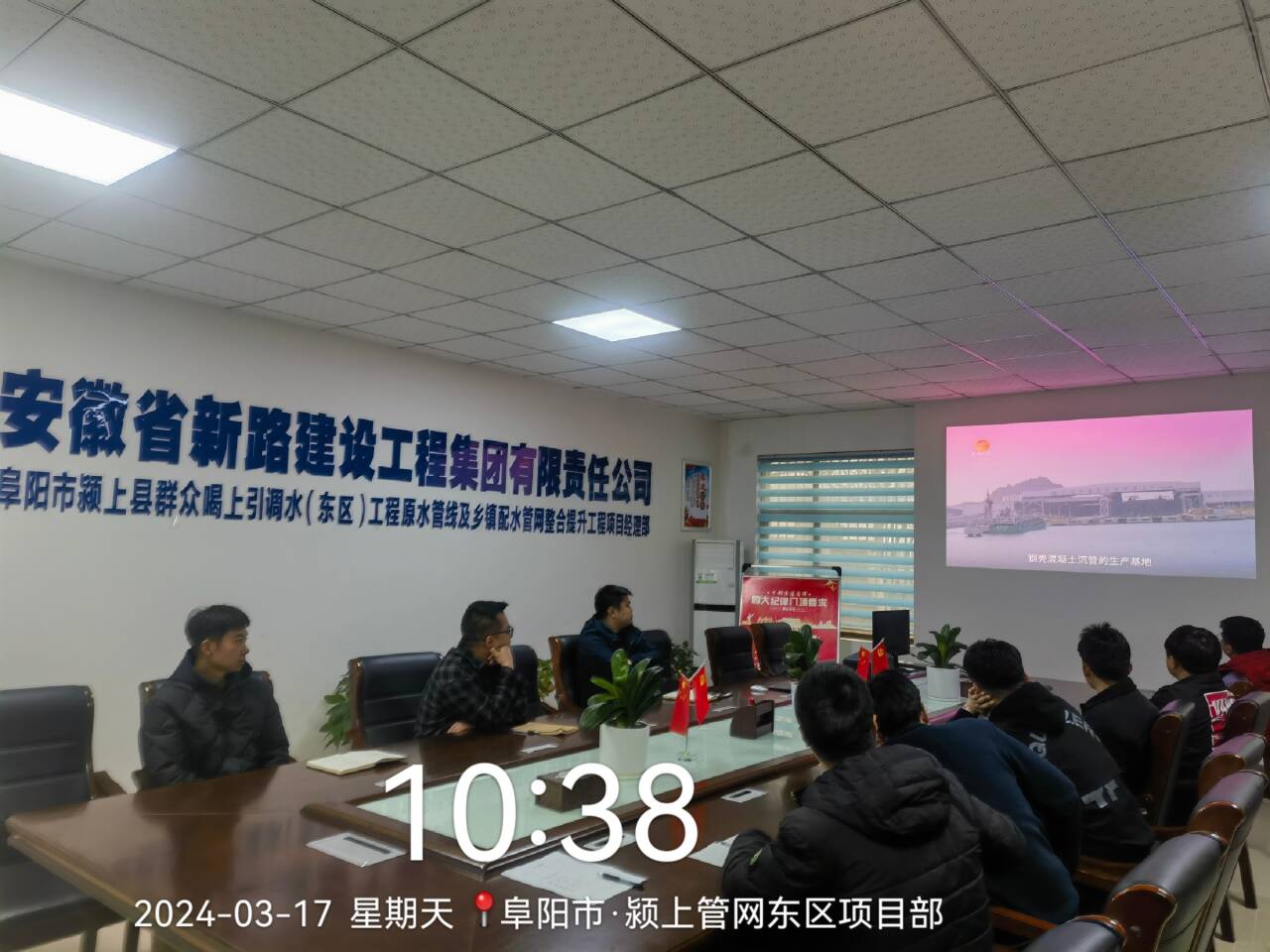 以学习宣传道德模范、大国工匠先进典型为途径,不断加强职工的职业道德、思想品德,同时丰富项目部员工文化生活,调动大家的工作热情和活力,3月16日上午,颍上管网东区项目部组织全体职工观看《伶仃洋上的大国工匠》教育纪录片。