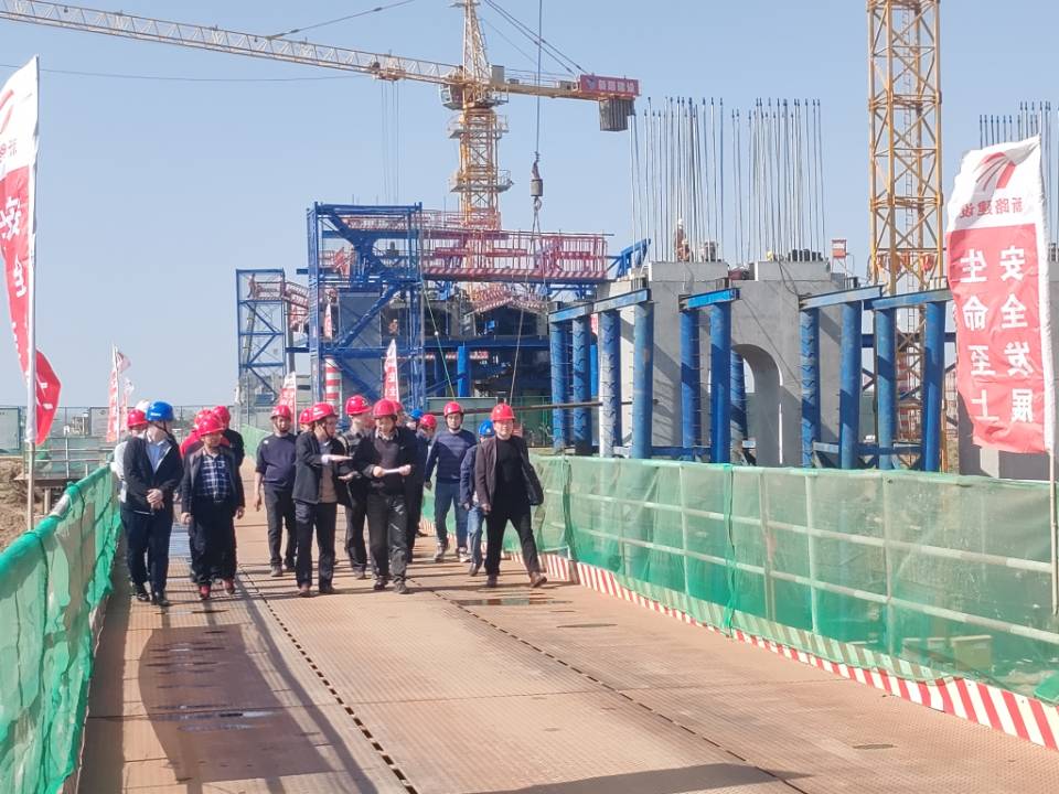 3月21日下午,安徽省水利厅党组成员、副厅长、厅机关党委书记徐维国一行赴杨湖大桥项目调研指导,颍上县河道管理局局长秦运来,颍上县交通运输局副局长王辉、项目办副主任彭勇、监理办总监姚卫邦、项目经理王如宝等主要负责人参与调研。