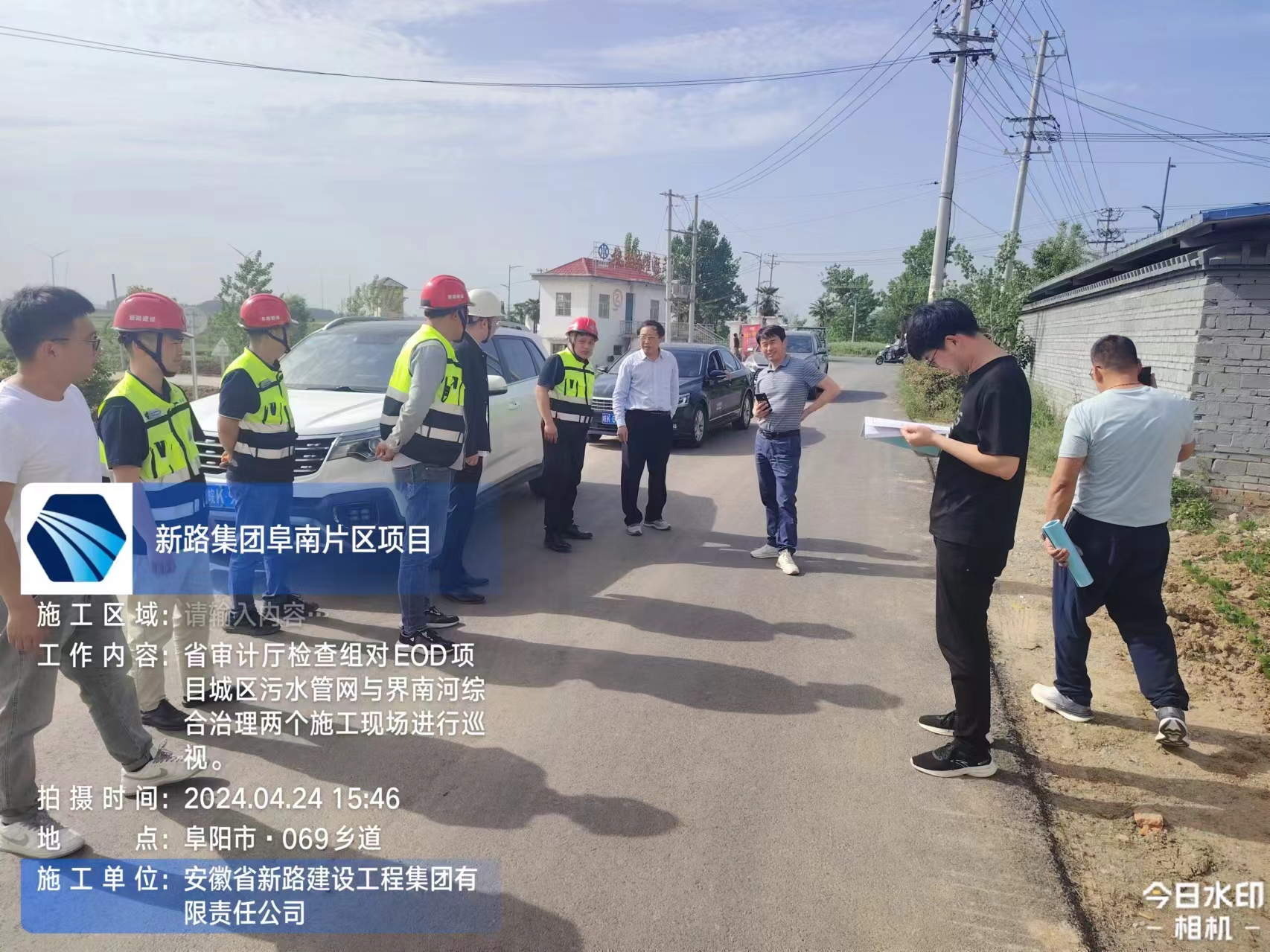 2024年4月24日,安徽省审计厅检查组对mansion88明升集团阜南片区EOD项目、城区污水管网项目与界南河河道综合治理项目的施工现场进行巡视,在调研过程中,检查组通过听取汇报、实地考察、查阅资料等方式,了解阜南EOD项目、城区污水管网项目与界南河综合治理项目的规划、建设和管理情况。