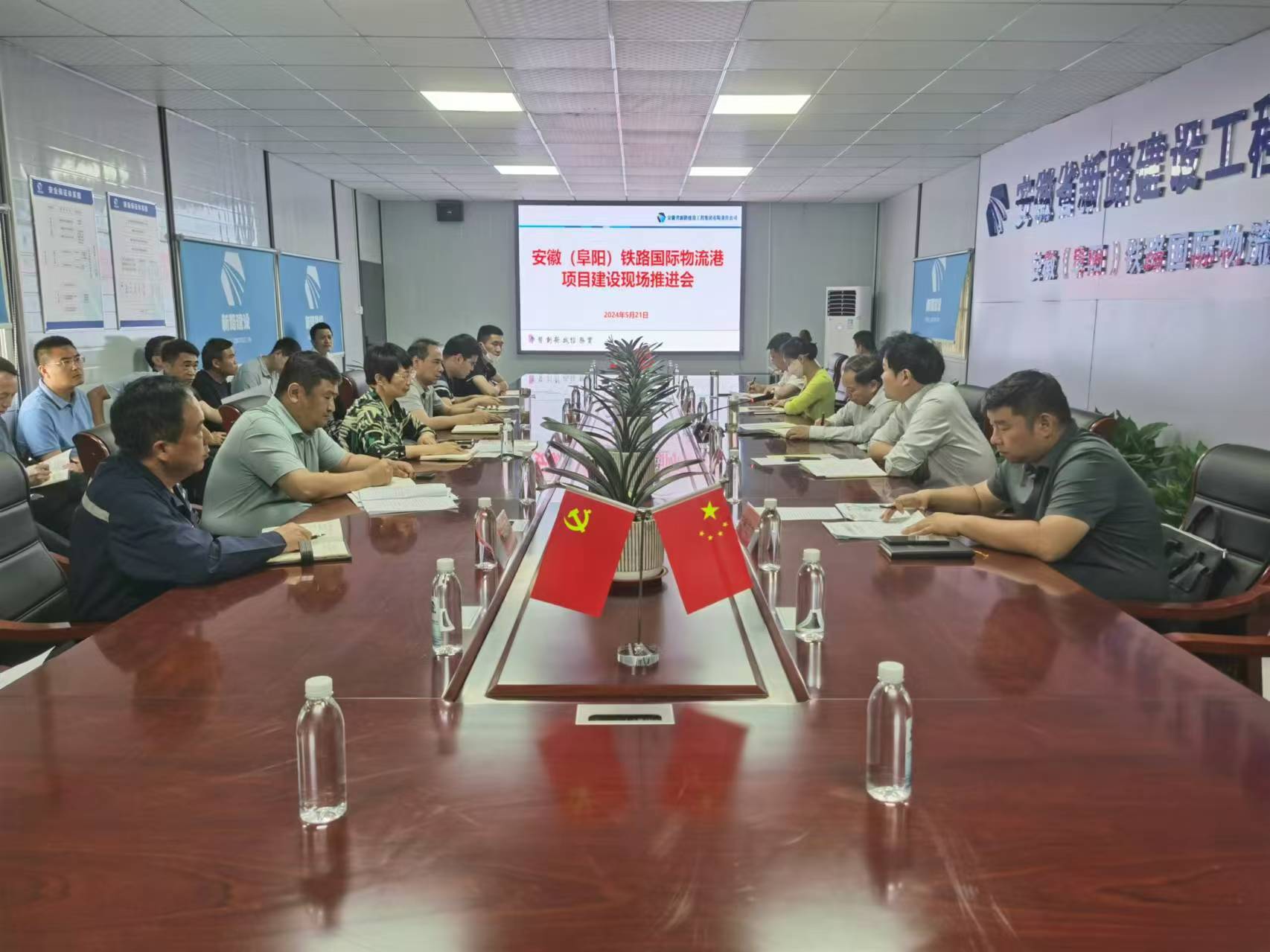 为加快推进安徽(阜阳)铁路国际物流港工程建设进程,5月21日下午,安徽(阜阳)铁路国际物流港项目建设现场推进会在我部召开。市委副秘书长杨博主持会议并讲话。市发展改革委、市铁路办、市资规局、颍泉区政府分管负责同志,颍泉区资规分局、颍泉区铁路办、京九物流港公司主要负责同志,国铁上海局集团合肥枢纽指挥部、中铁十局阜阳北铁路物流基地项目部、安徽(阜阳)铁路国际物流港道路建设项目部有关负责同志参加会议。