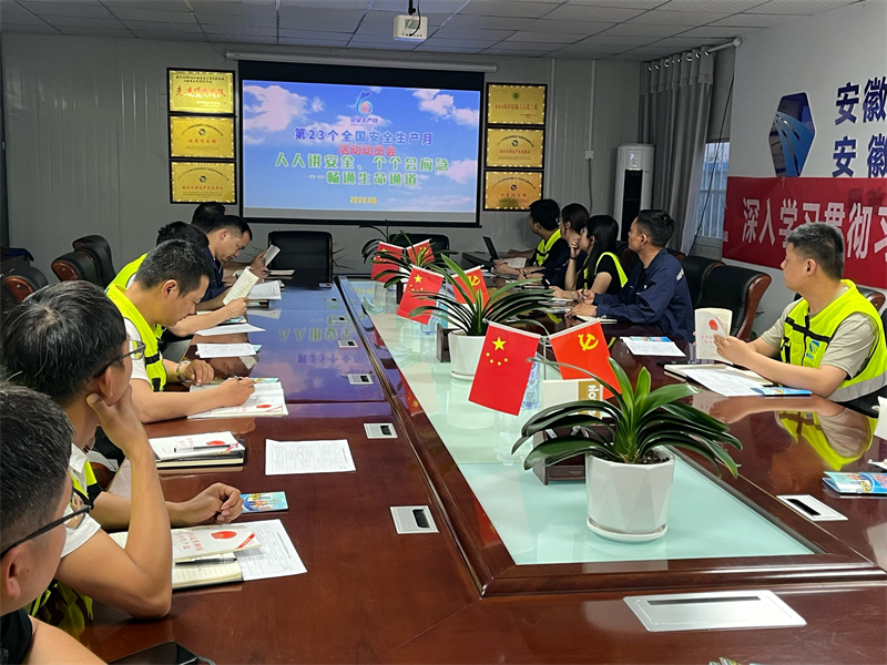 2024年5月59日,界首人防项目部组织开展了“安全生产月”动员活动,会上传达了集团公司印发的《安全生产月活动实施方案》,并对项目部安全生产月的相关工作进一步部署,安全科为全体员工发放安全口袋书及安全标准规范,组织观看了《安全生产 责任在肩》、《生命通道》等警示教育片。会后组织全体员工在旗台下进行安全宣誓并签字留念。