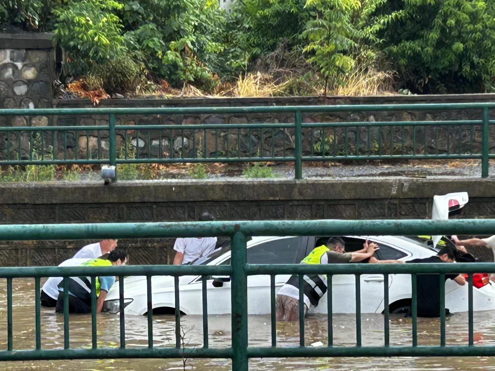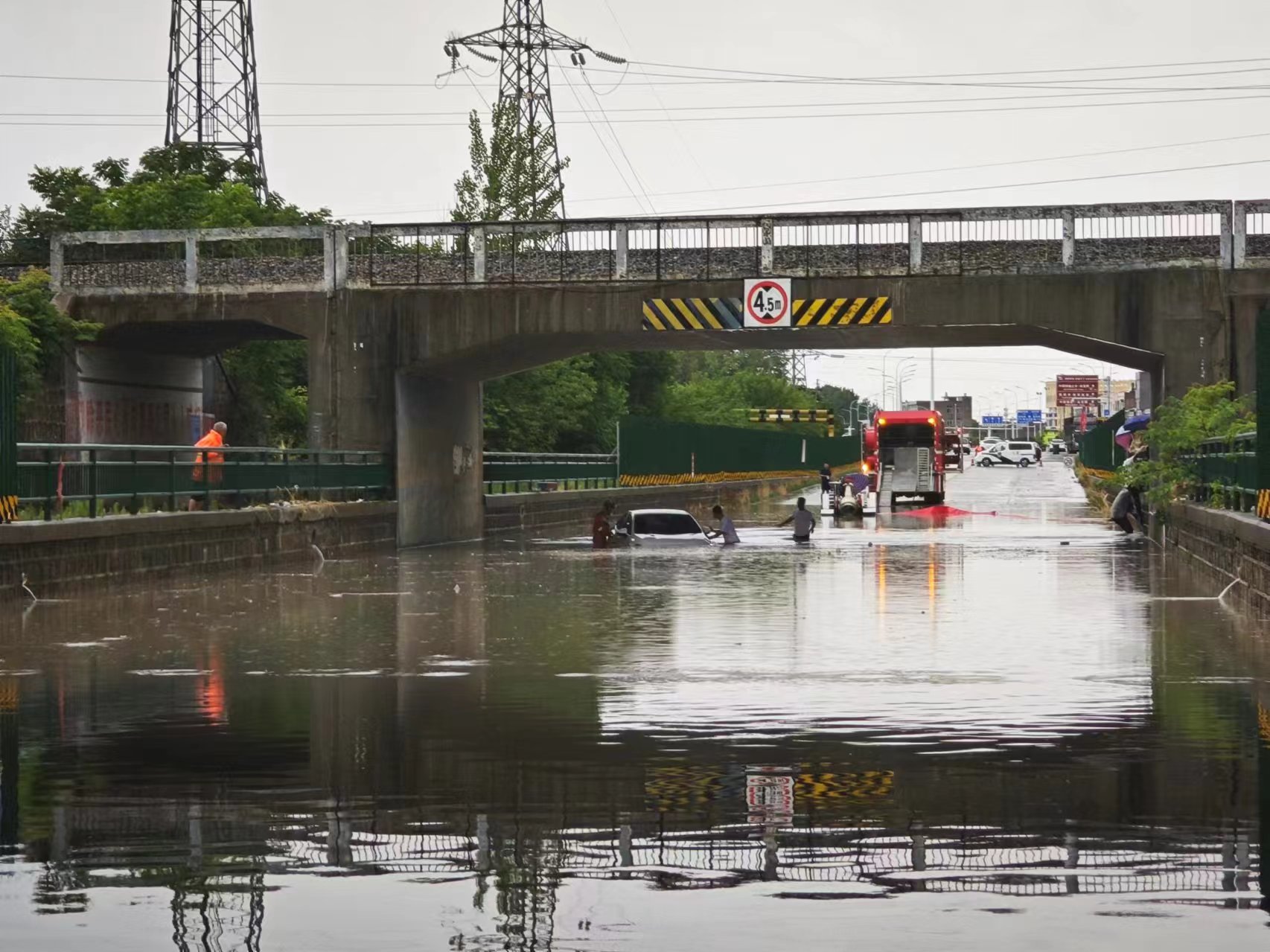 2024年6月21日午间13时许,阜南片区项目领导接到县重点中心通知,阜南县临颍大道下穿京九铁路处遭遇突降暴雨,导致隧道内积水严重,积水深度达到约1米,造成多辆车辆被困,情况十分紧急,请我部人员参与抢险救援。接到县重点中心的紧急通知后,我项目迅速启动应急响应机制,一场与时间赛跑的抢险救援行动随即展开。
