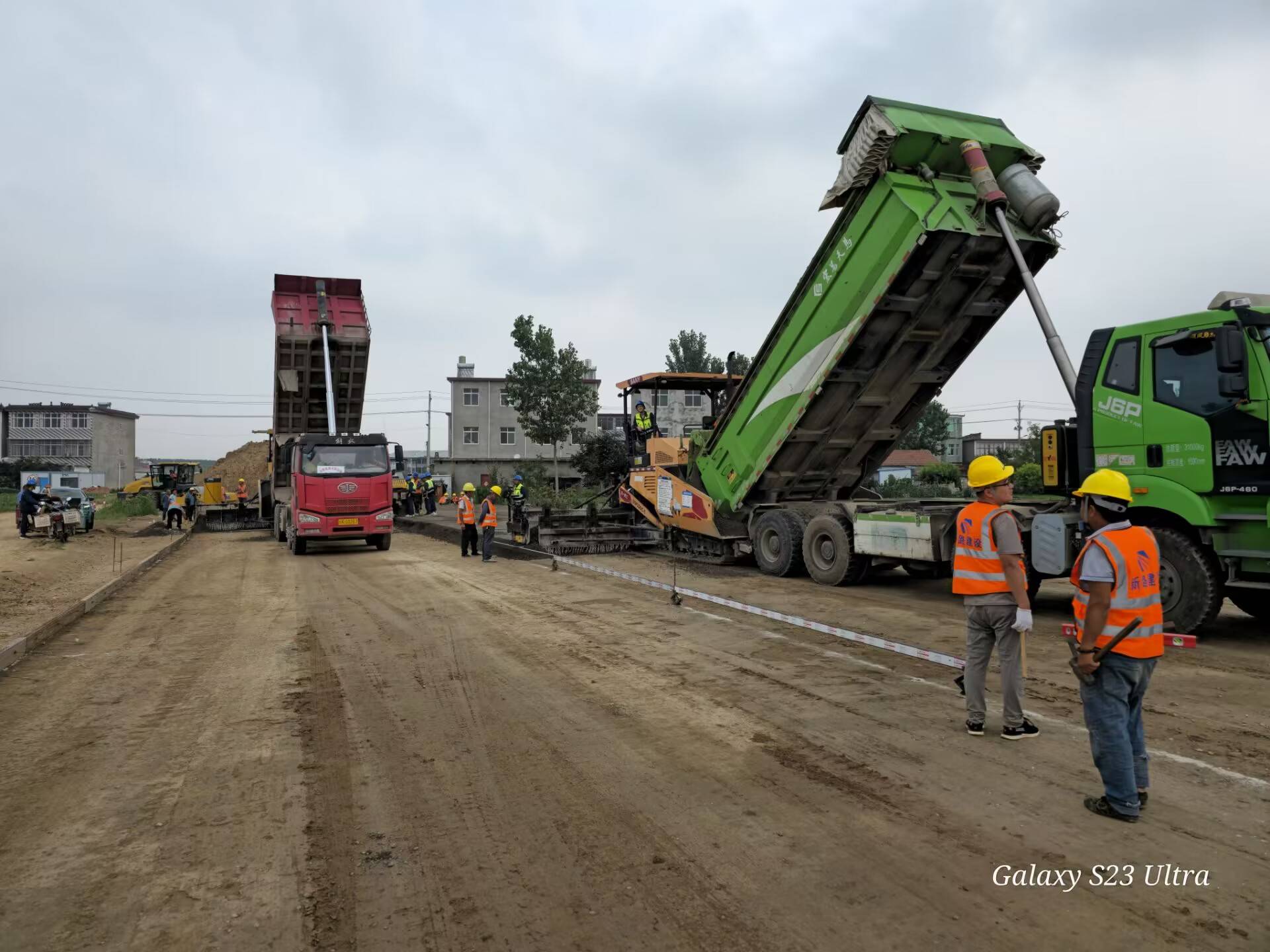 6月26日上午8点,S428(原S420)颍上杨湖至赛涧颍河大桥及接线工程项目水稳施工现场,2台摊铺机、3台压路机、2台洒水车、16辆运输车、2辆装载机严阵以待,施工管理人员忙碌地指挥着摊铺机械,正式开始水稳试验段施工。当天下午,试验段摊铺顺利结束。