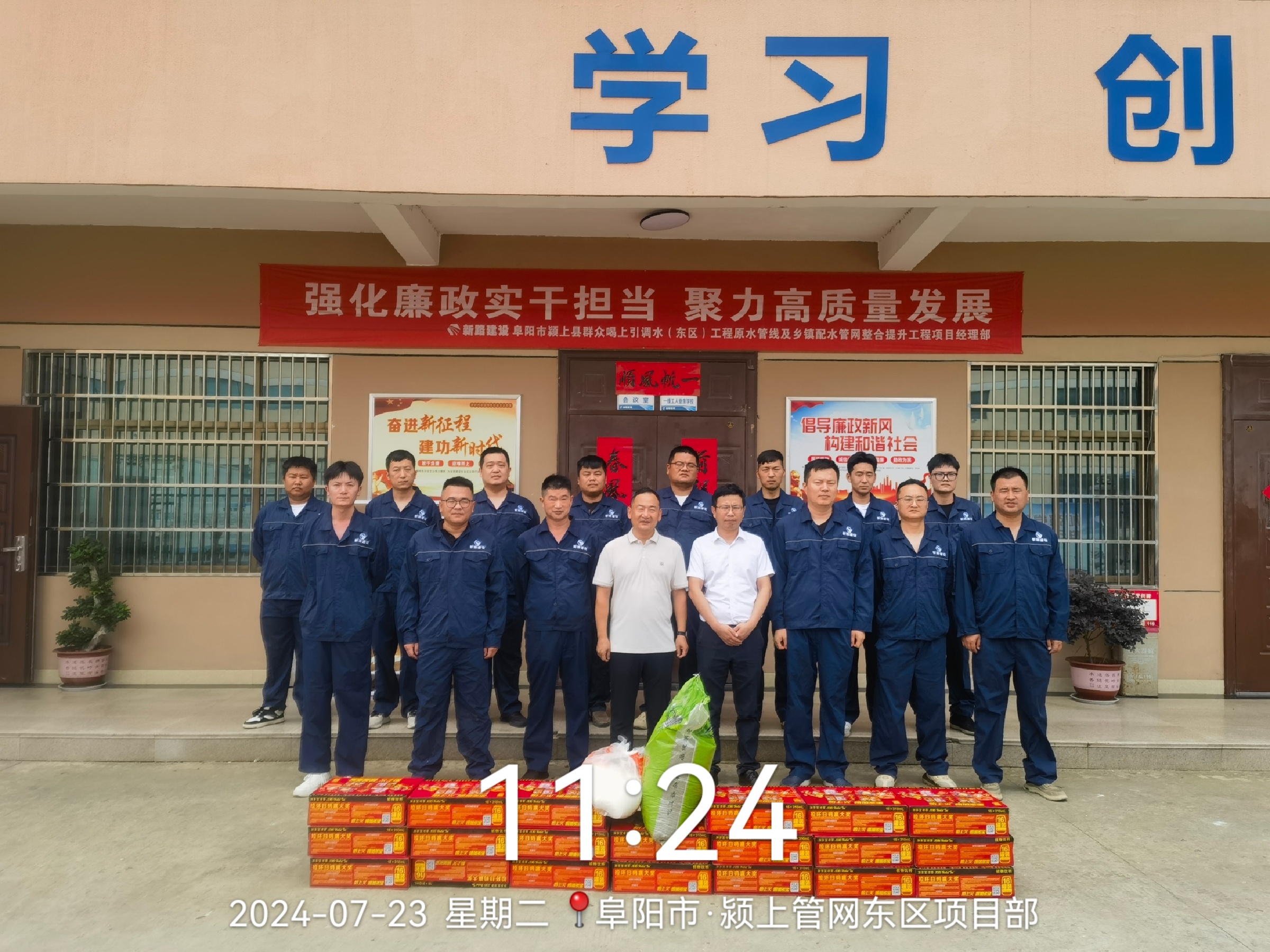 炎炎夏日送清凉,丝丝关爱入心田。此次慰问活动不仅传递了mansion88明升集团公司领导的关爱,也体现了公司良好的文化氛围,同时激发了项目部一线职工的积极性,提升了大家对于工作的热情,竭尽全力为公司更快更好的发展贡献自己的一份力量。