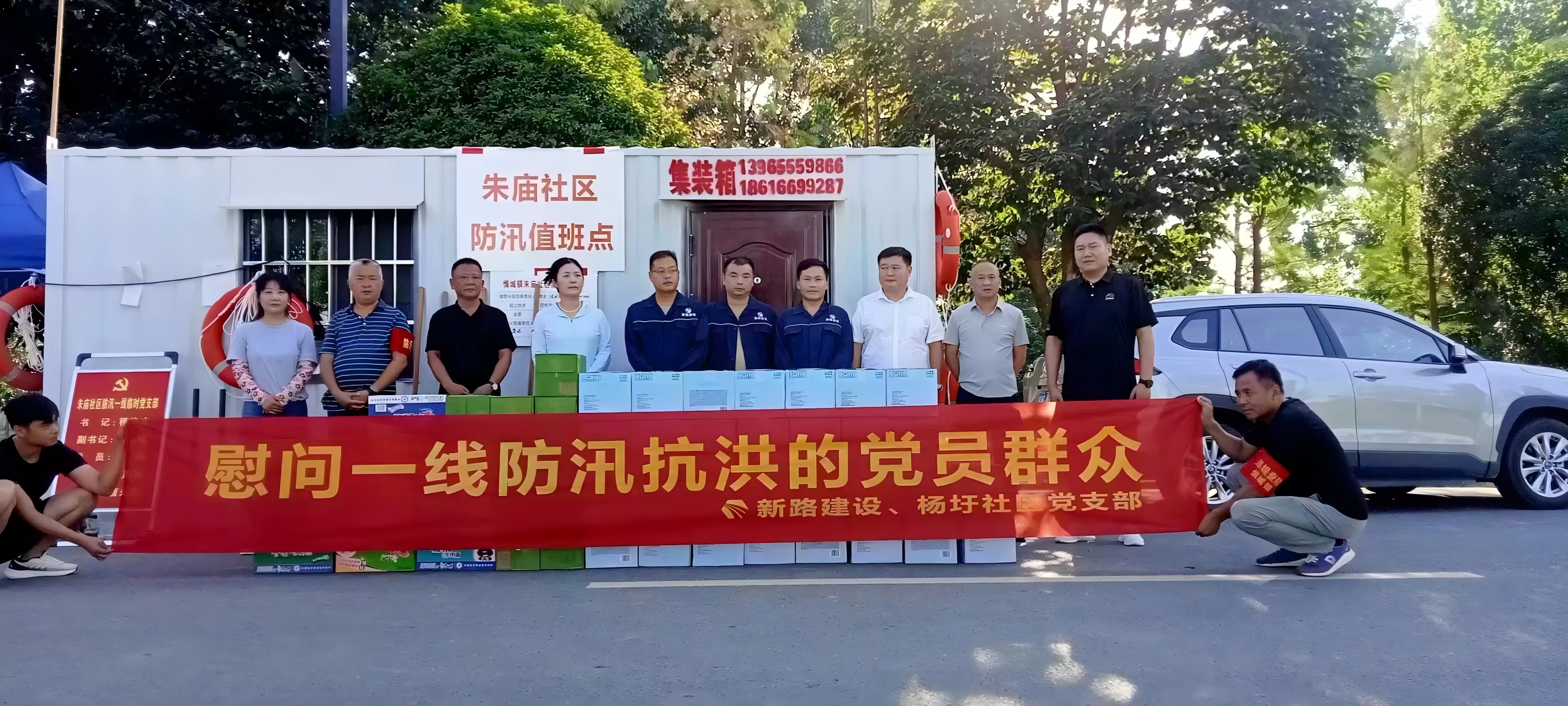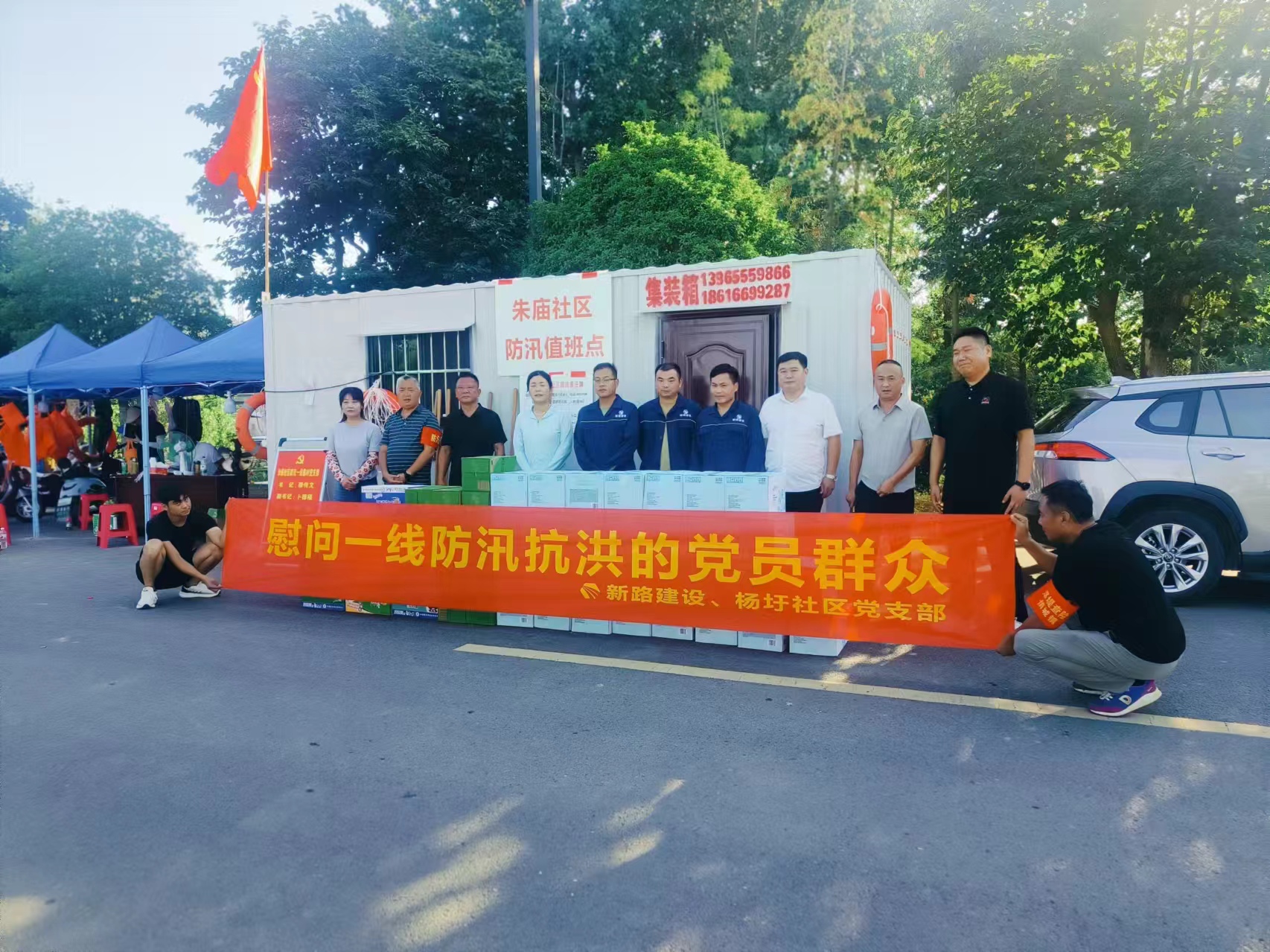 2024年7月24日,杨圩社区党支部王书记带领mansion88明升集团一行慰问朱庙社区防汛抗洪值班点。
