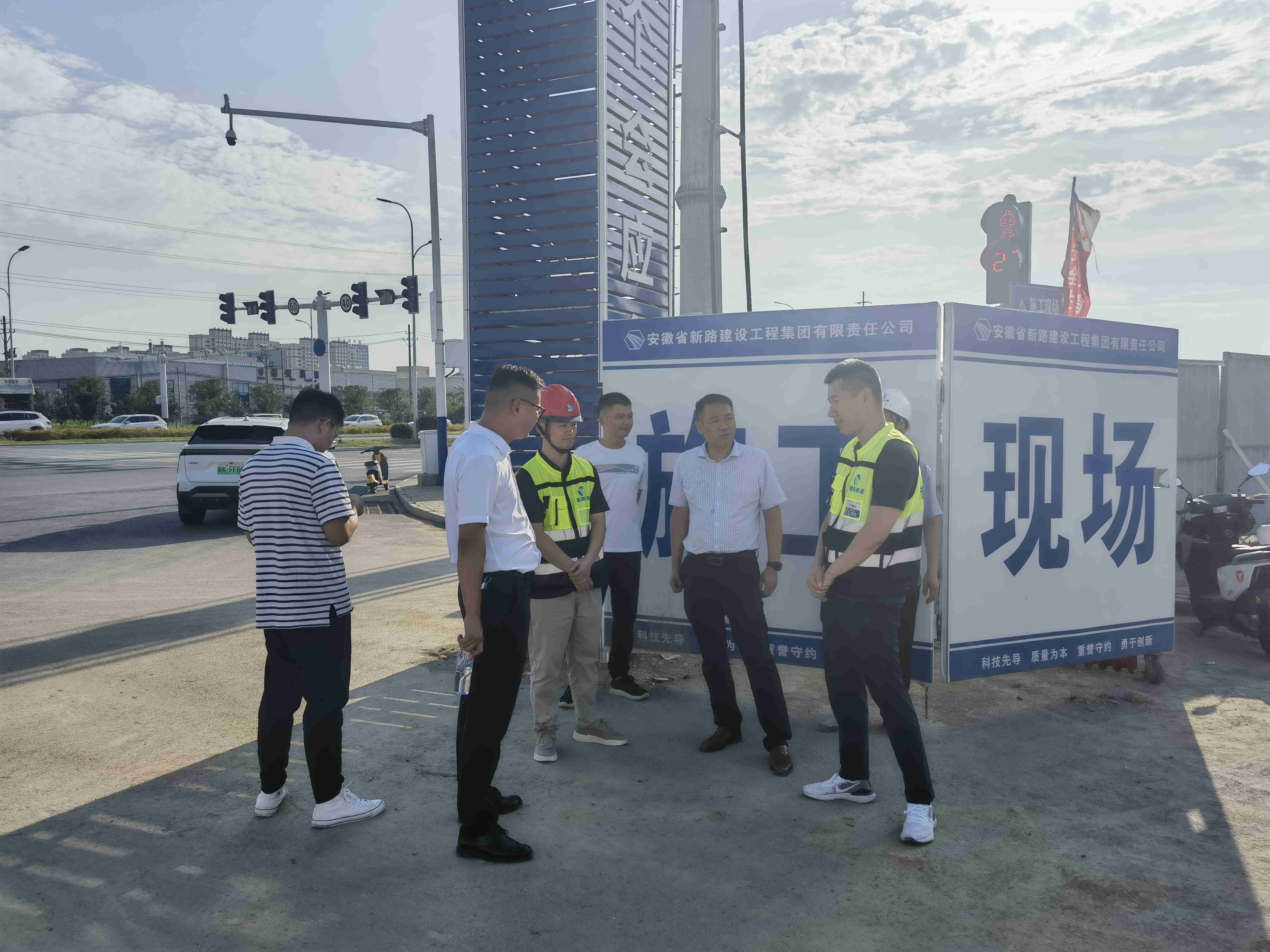 8月8日,阜南县重点工程建设管理服务中心党组书记、主任田城,副主任丁现辉到永兴路(京九路—段郢路)一标段项目施工现场,开展实地调研并就文明施工、机械安全、临时用电、防暑降温等方面开展安全巡查工作,项目责任单位负责人、阜南永兴路一标段负责人薛鸿儒陪同检查。