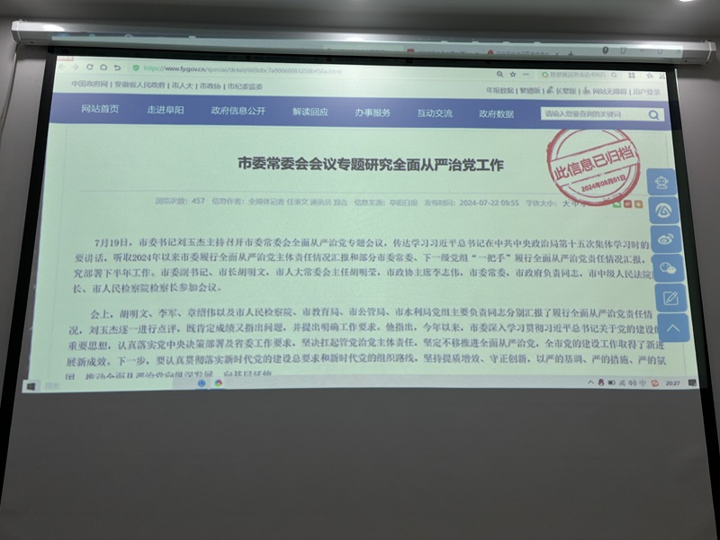 本次活动有以下几个流程:1、学习传达公司下发“以案示警 以案为鉴 以案促改”暨2024年上半年党风廉政和反腐败的工作会议通知;2、组织学习习近平总书记在中共中央政治局第十五次集体学习时的强调内容;3、学习阜阳市市委常委会会议专题研究全面从严治党工作;4、观看阜阳纪委监察网内党风廉政视频并随机抽选职工谈一谈个人感悟。